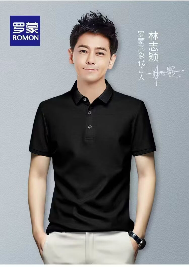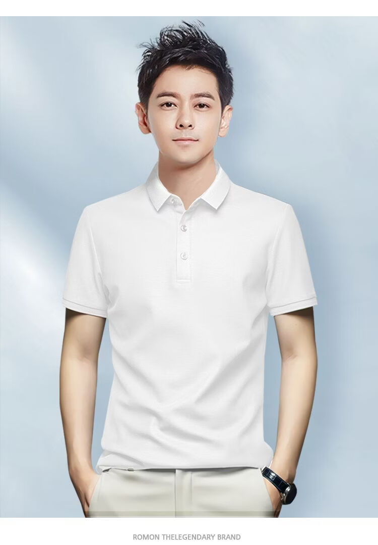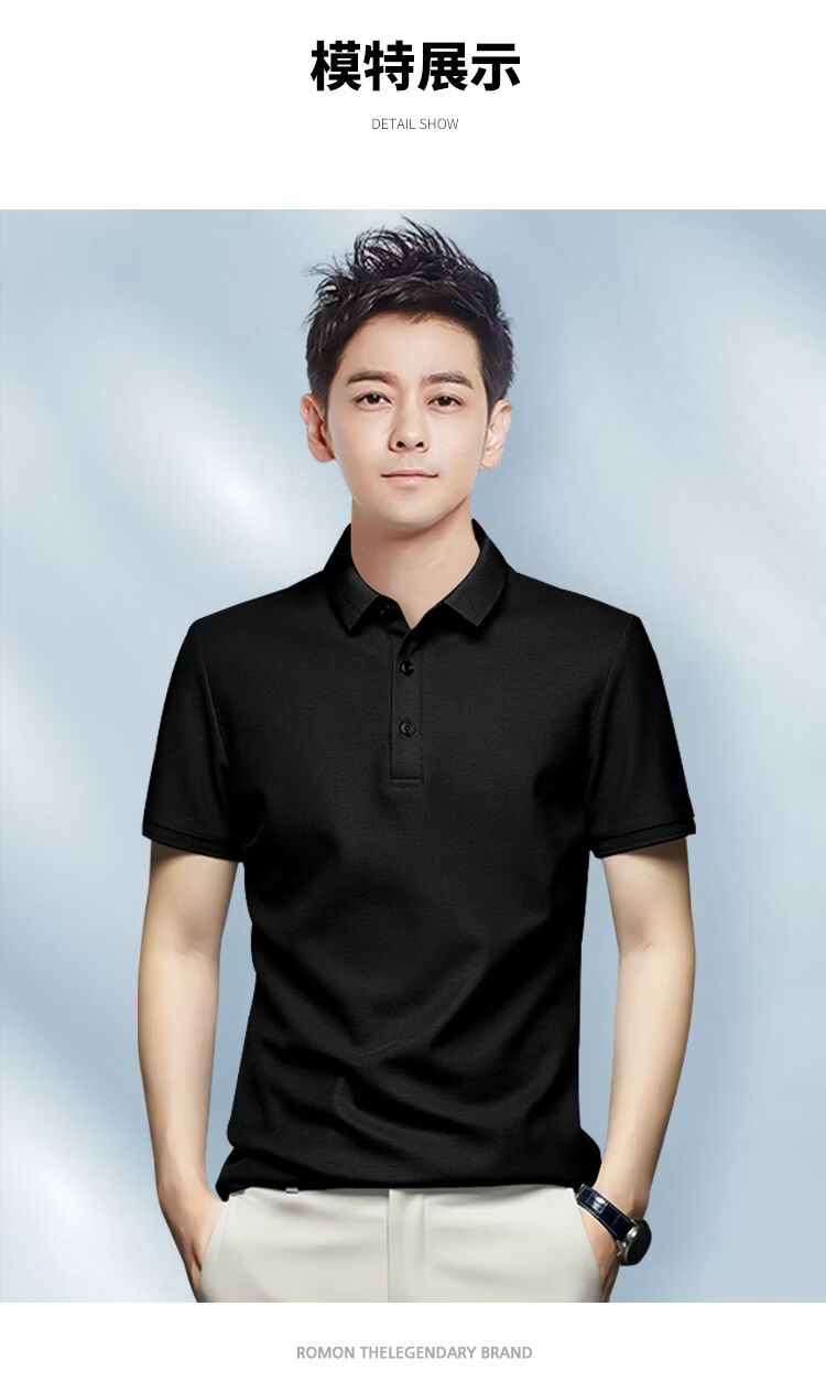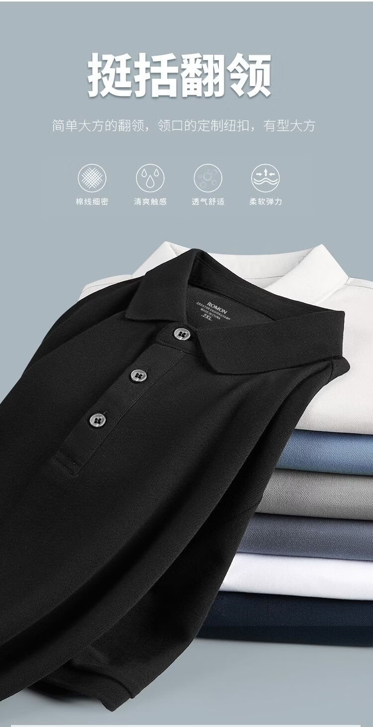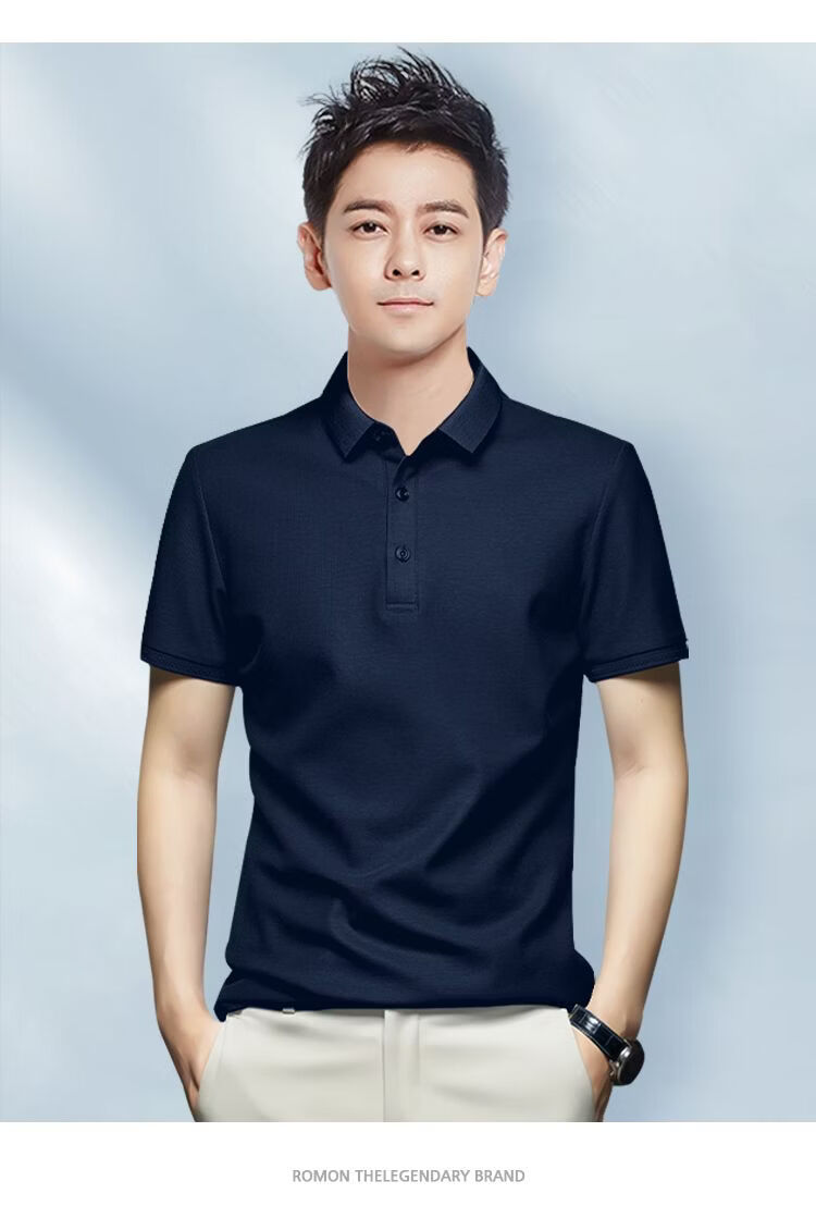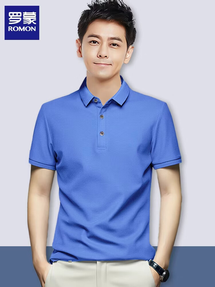 罗蒙(ROMON)正品翻领短袖 Polo衫男士夏季透气上衣服商务休闲经典纯色百搭t恤 彩蓝色 5XL 建议205-230斤