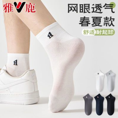 雅鹿男士网眼短筒袜春夏季薄款亲肤运动袜吸湿排汗防臭袜抗菌透气