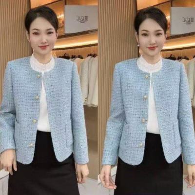 妈妈春季休闲百搭外套小个子时尚圆领上衣中年女士春秋小香风外套