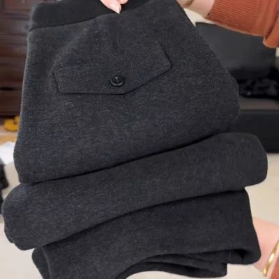 鄂尔多斯市清仓正品高档羊毛呢梧桐裤女加绒人字纹宽松垂感直筒裤【4月6日发完】
