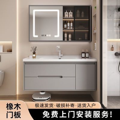新款橡木智能浴室柜组合陶瓷一体盆卫浴柜洗脸手盆柜卫生间洗漱台