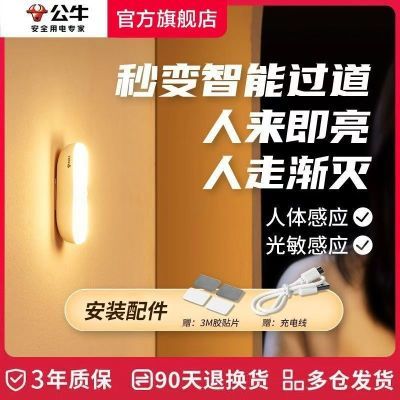 [公牛]LED小夜灯卧室床头智能感应灯过道衣帽间人体感应便携照明灯