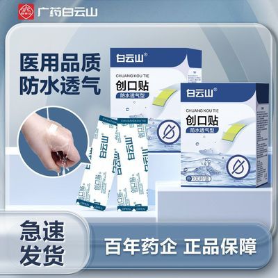 白云山创口贴100片/盒防水创口贴医用防水止血应急家用创伤创口贴