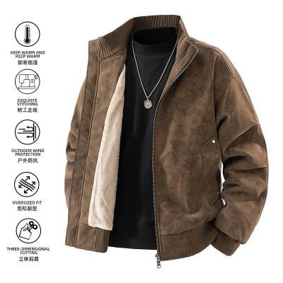 新冬季皮毛一体加绒加厚PU皮机车夹克重工源头外贸大码复古皮棉服