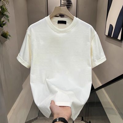 短袖t恤男士白色夏季新款圆领修身潮流体恤个性帅气衣服活动体恤