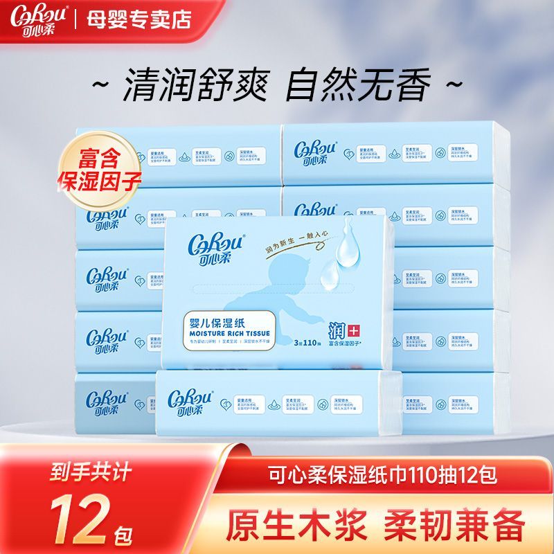 可心柔V9云柔巾新生儿必备用品柔软保湿婴儿柔纸巾3层110抽整箱