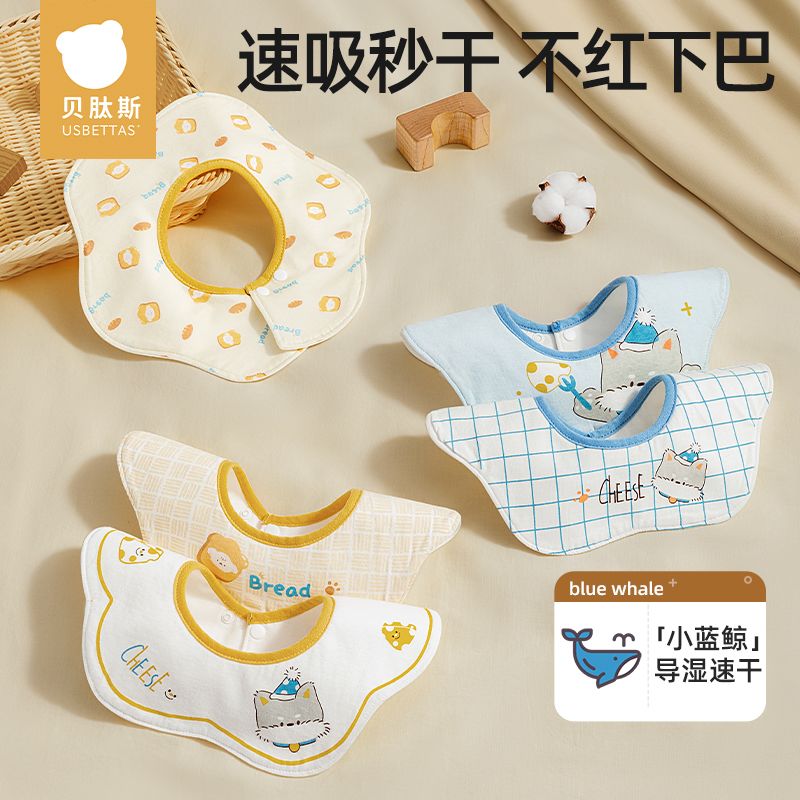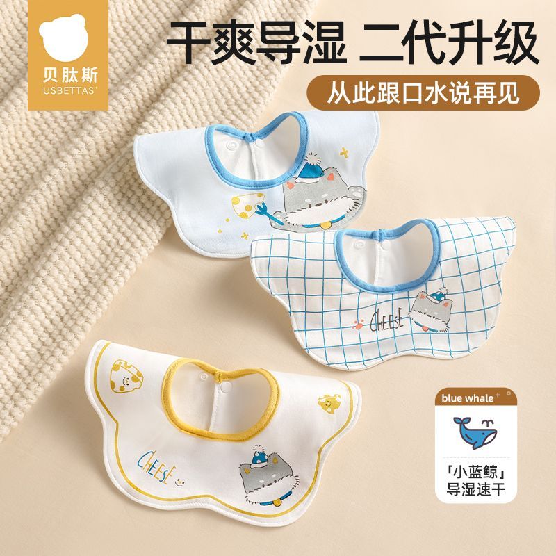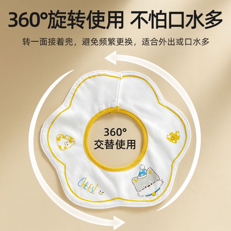 贝肽斯婴儿围嘴宝宝防吐奶口水巾纯棉防水新生儿360°旋转圆形围兜