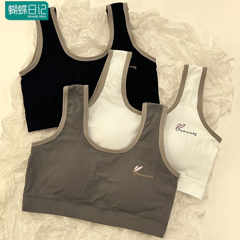 蝴蝶日记无痕内衣女发育期学生固定胸垫无钢圈少女文胸显小背心薄
