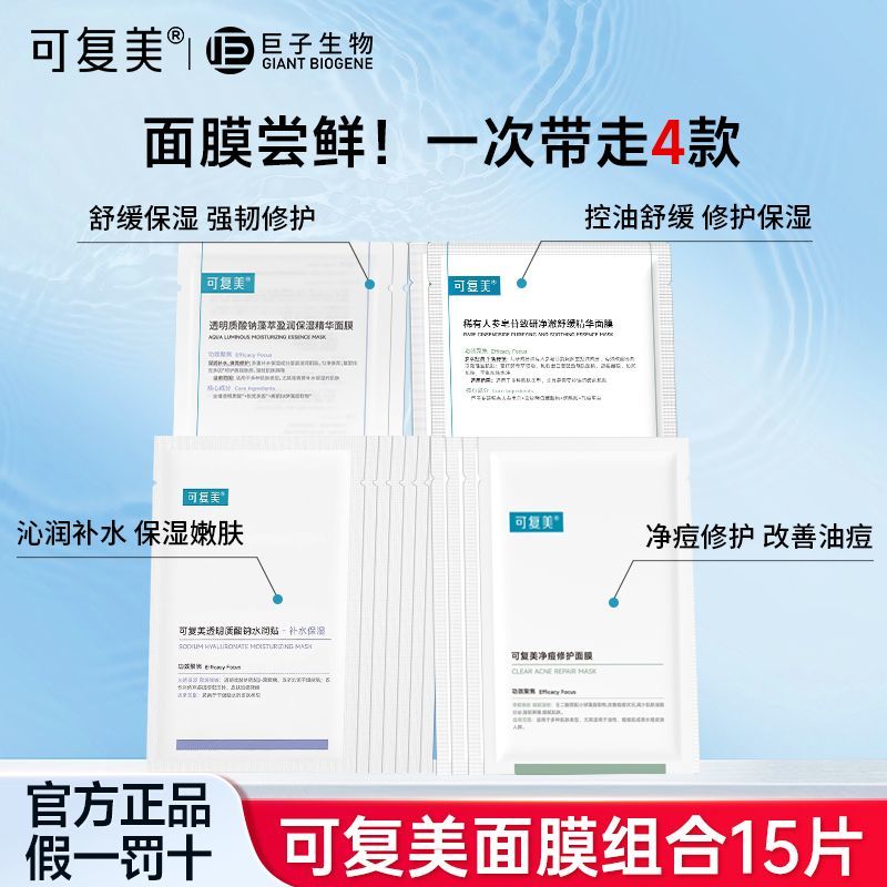 可复美面膜组合15片透明质酸钠保湿水润贴净痘修护控油秩序面膜