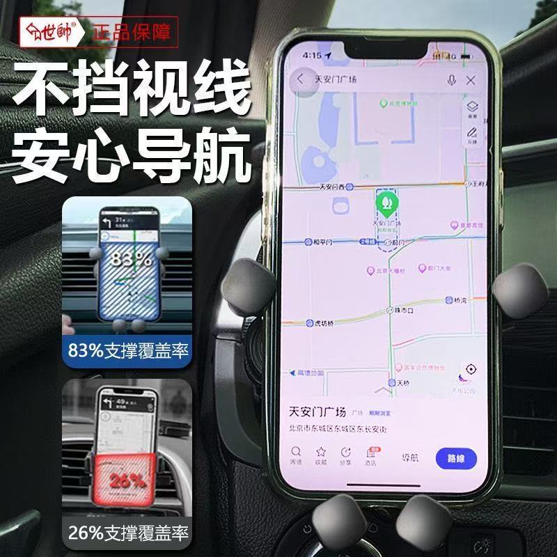 世帅新款车载手机支架汽车卡扣式重力感应支撑架出风口通用导航
