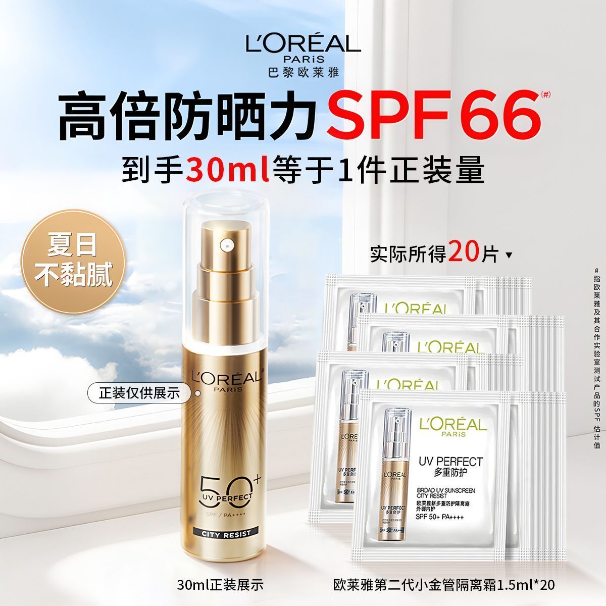 欧莱雅防晒霜新款二代小金管多重防隔离霜护夏季户外防紫外线学生