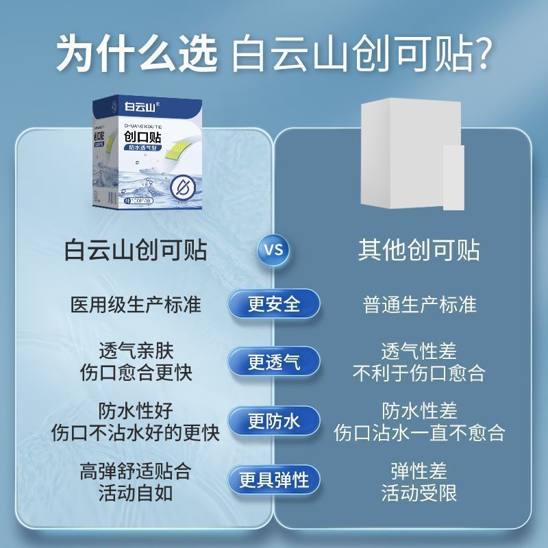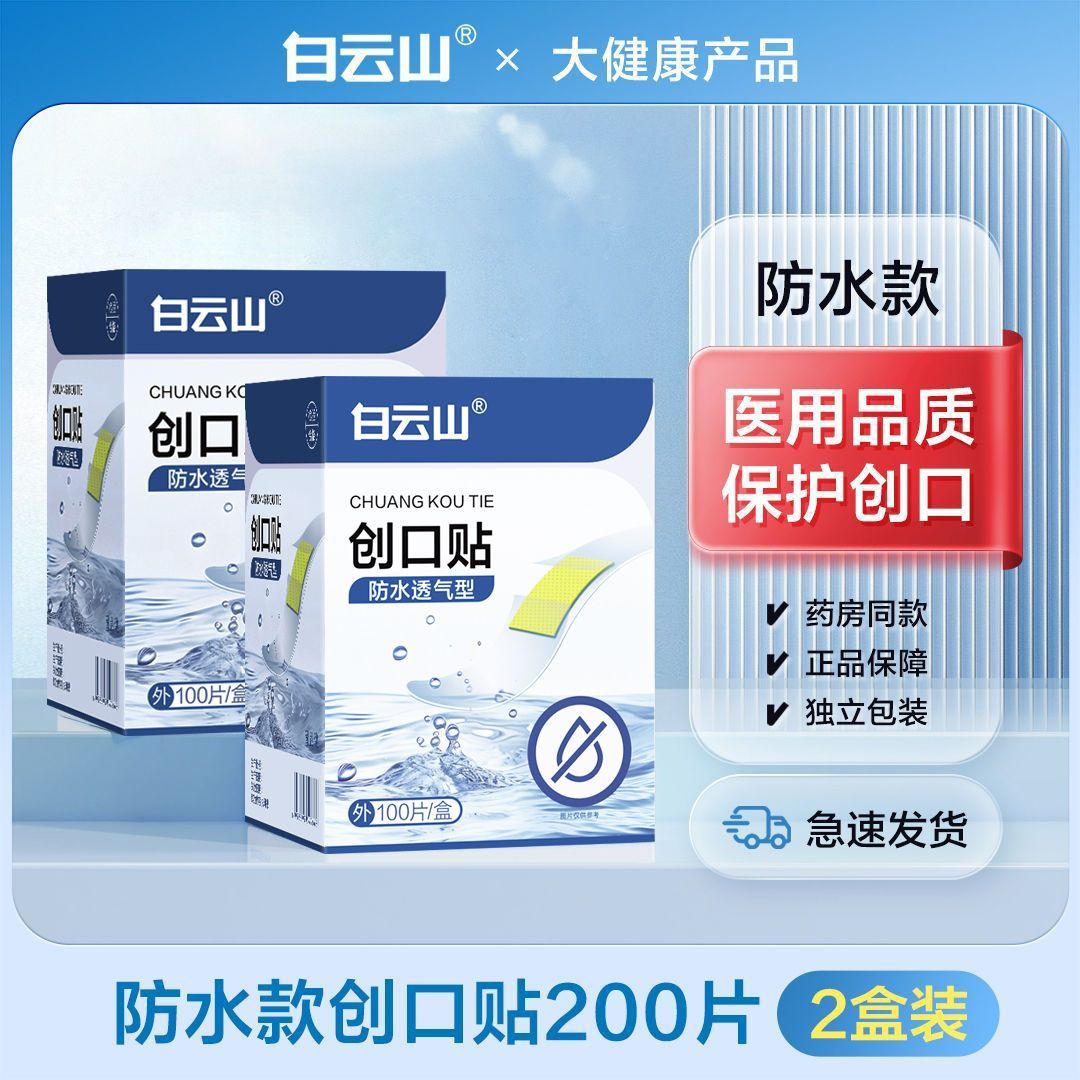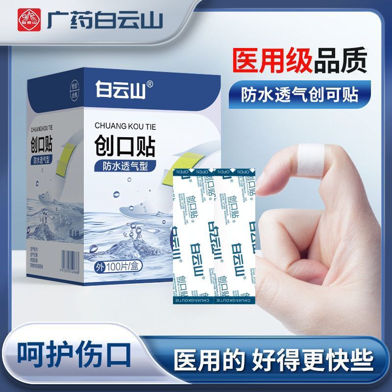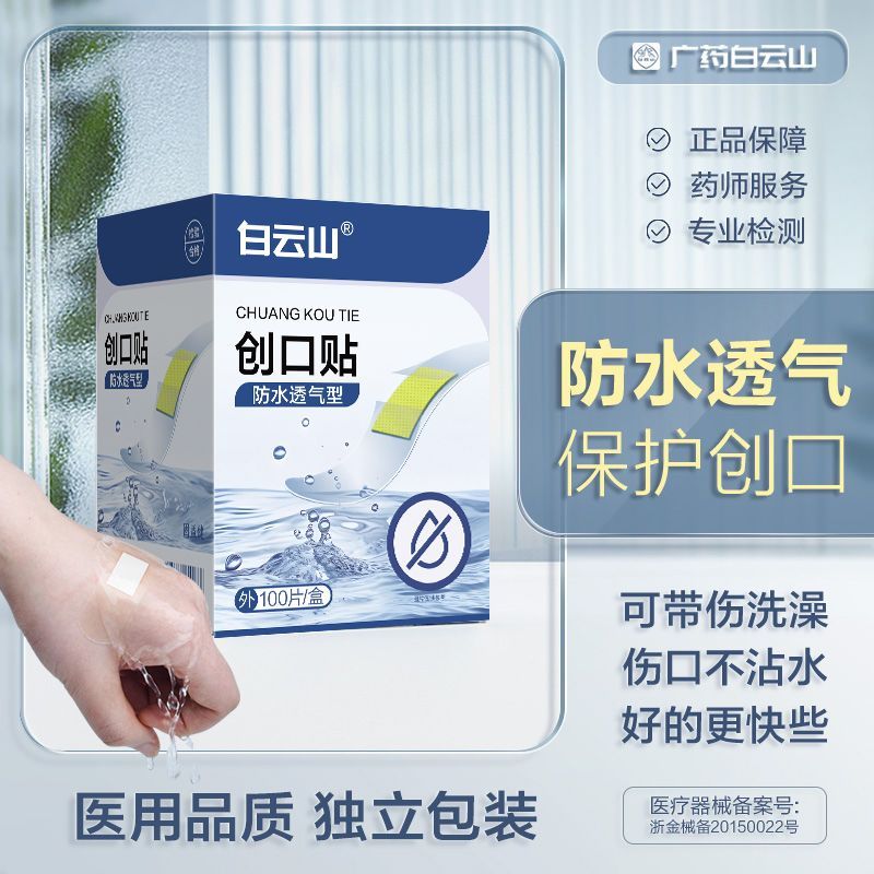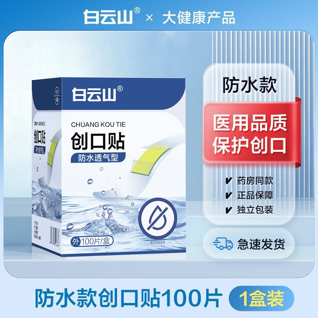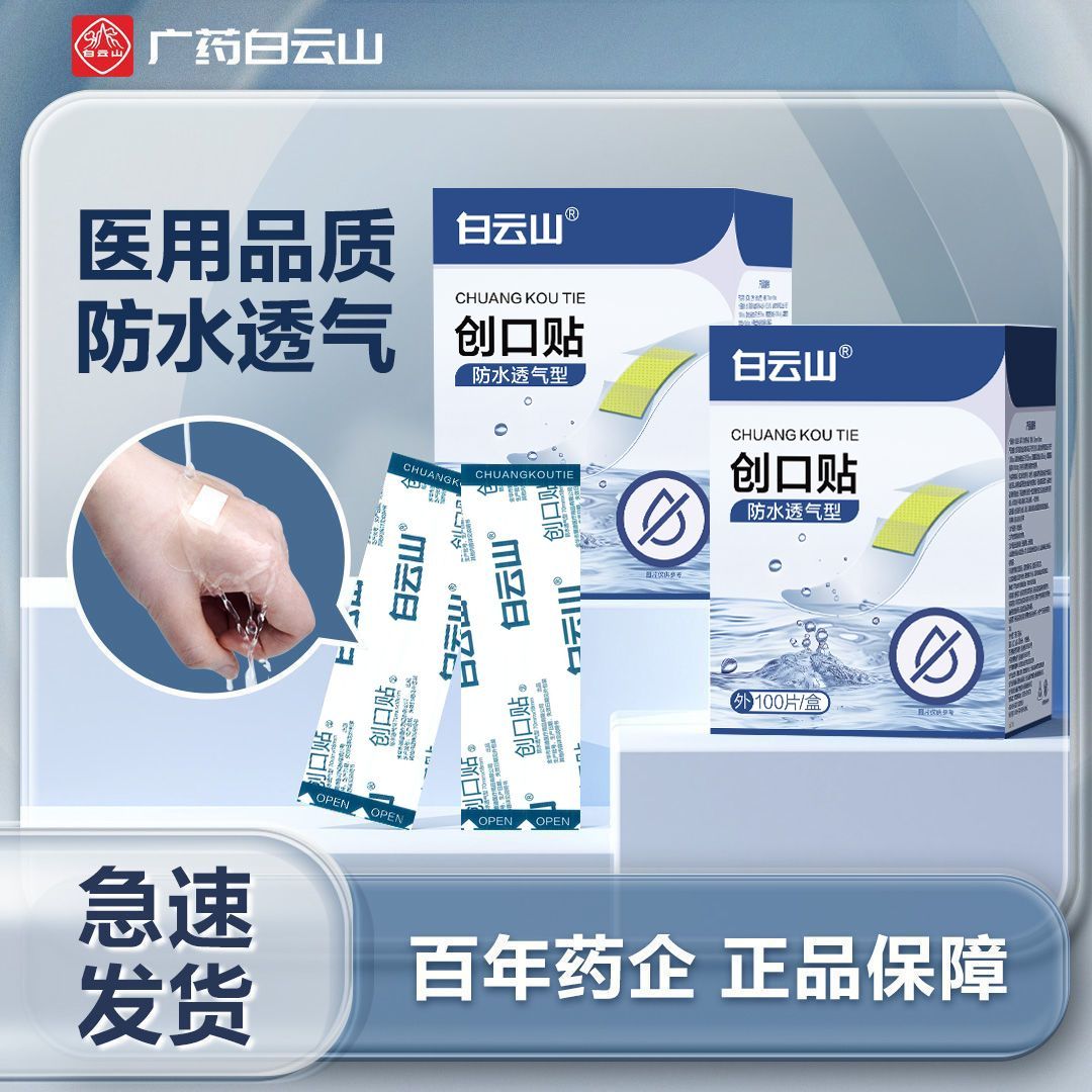 白云山创口贴100片/盒防水创口贴医用防水止血应急家用创伤创口贴