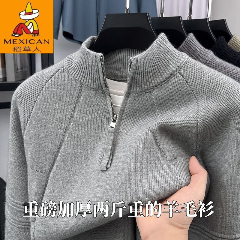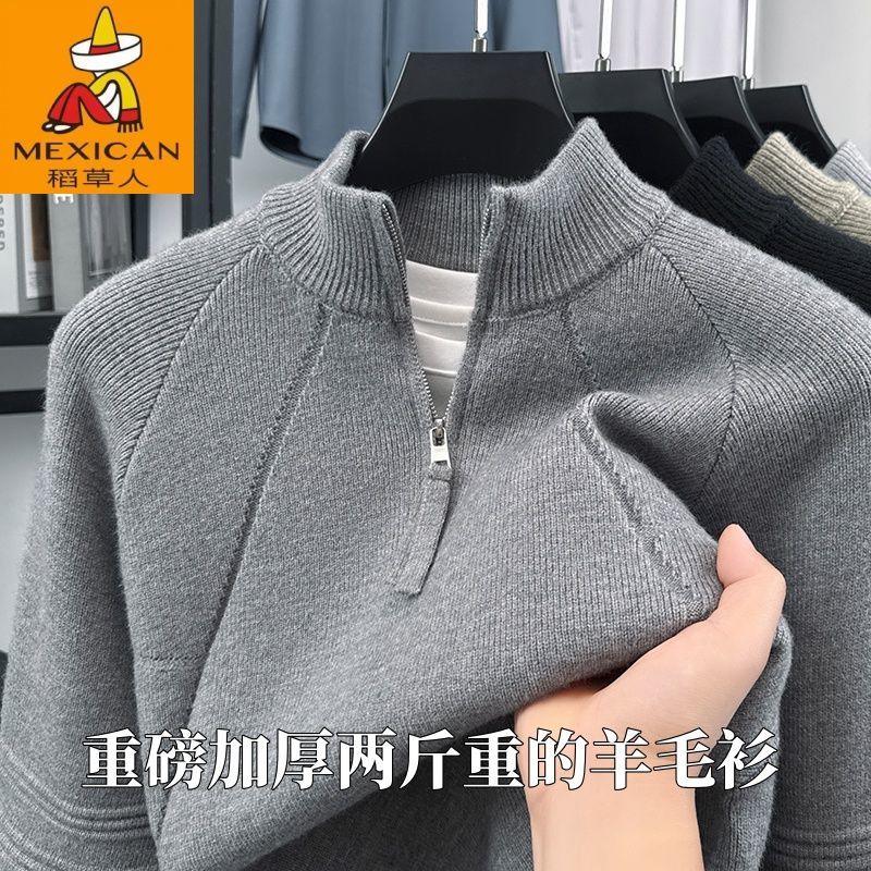【重磅羊毛衫】稻草人冬季加厚半高领拉链毛衣男士提花针织保暖衣