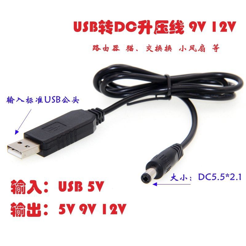 USB升压线5V转9V12V光猫电源线充电宝供电线路由器转接线升压线