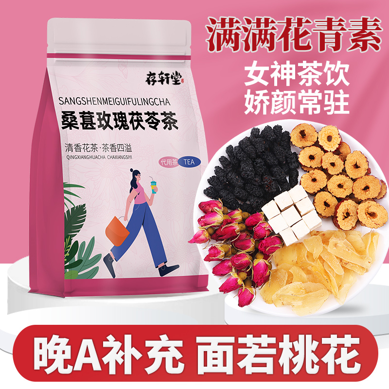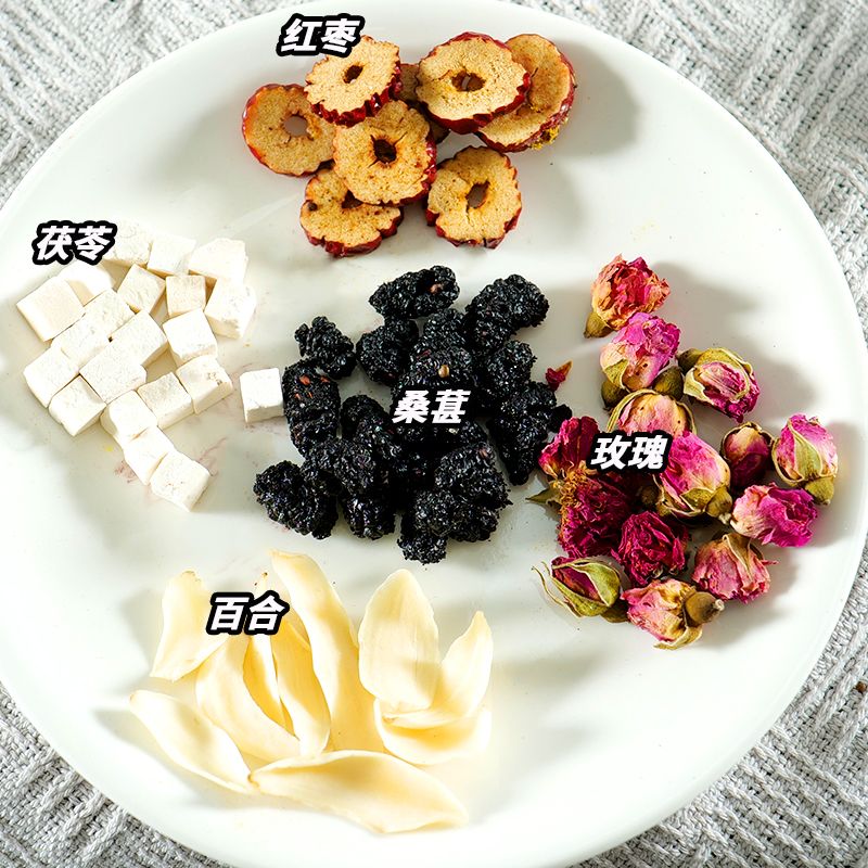 桑葚干玫瑰花花茶红枣茯苓百合组合熬夜元气茶包桑椹秋女性养生茶