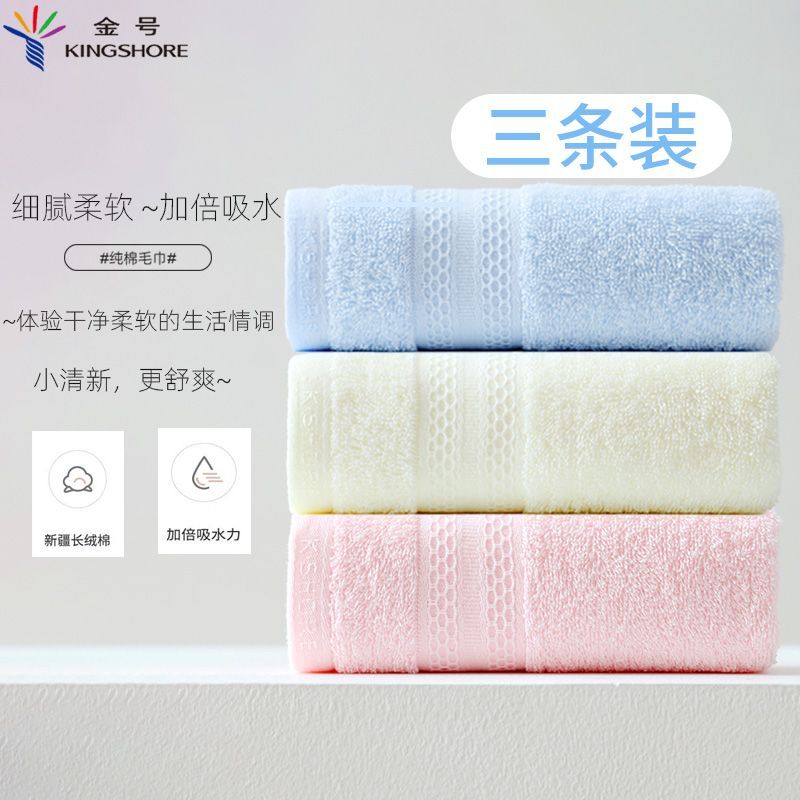 3条装金号成人加厚纯棉毛巾家用柔软吸水洗脸洗澡全棉面巾不掉毛