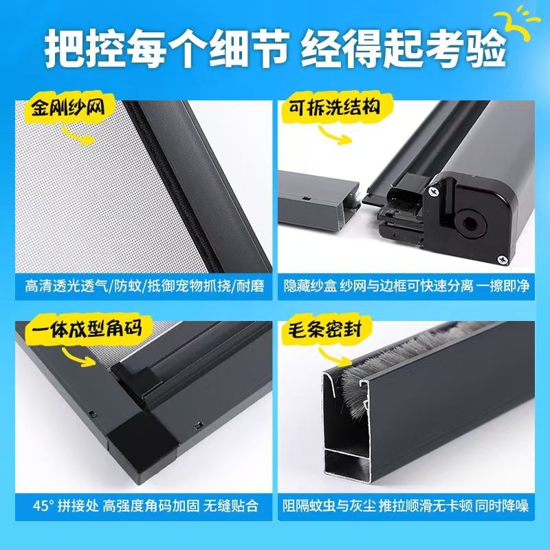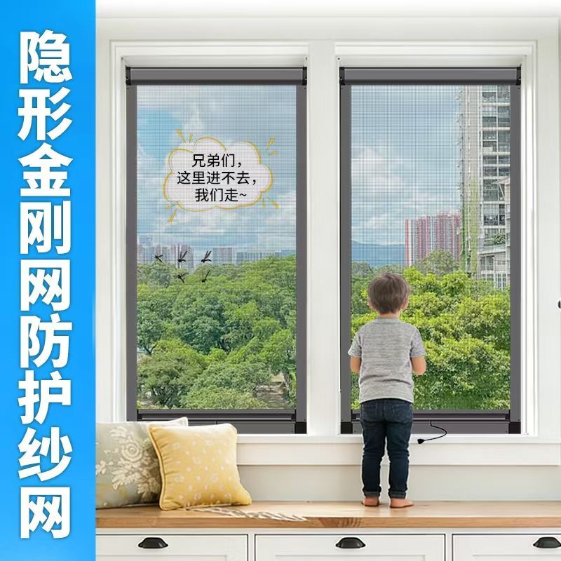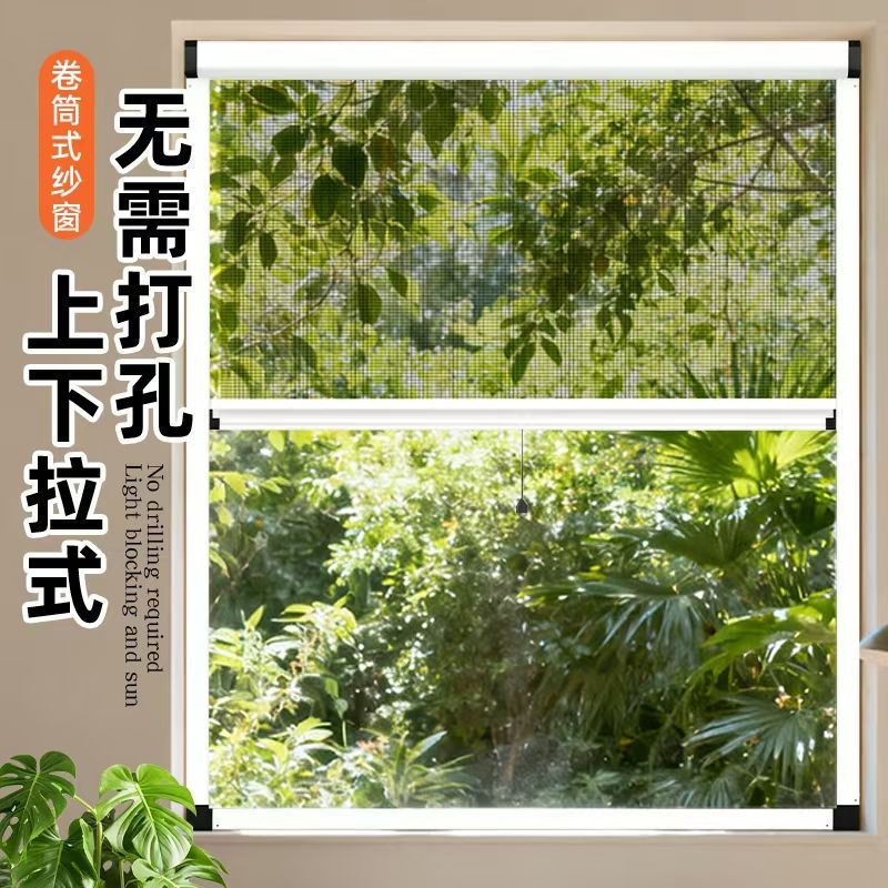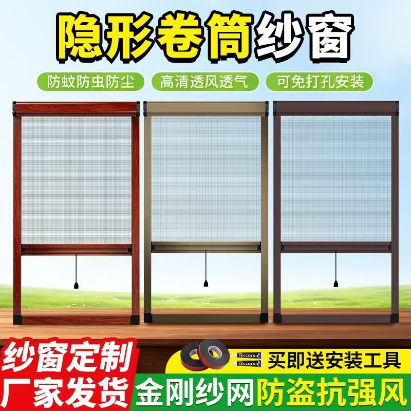 定制免打孔隐形纱窗伸缩推拉铝合金上下卷筒式沙窗网家用自装防蚊
