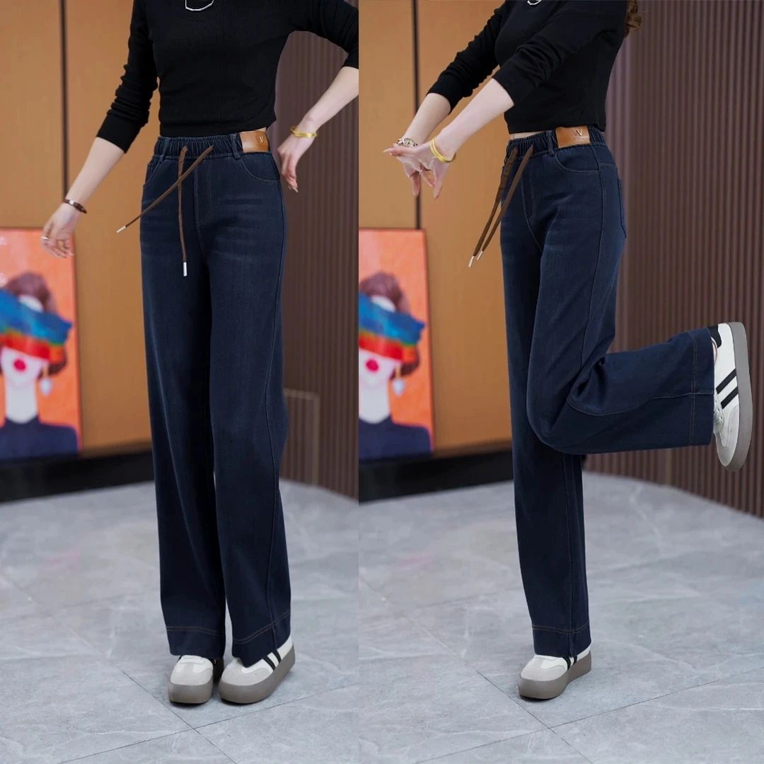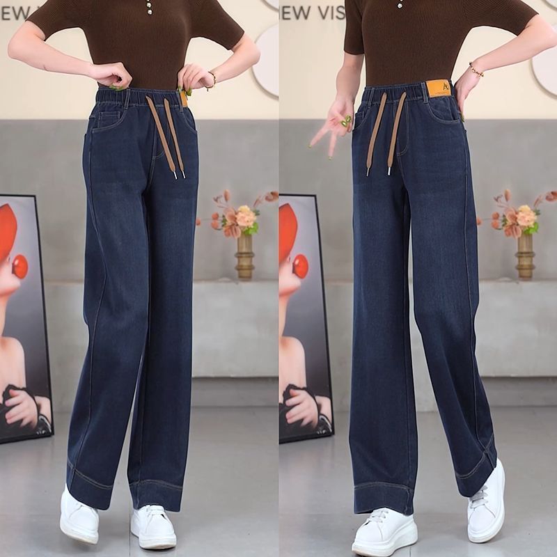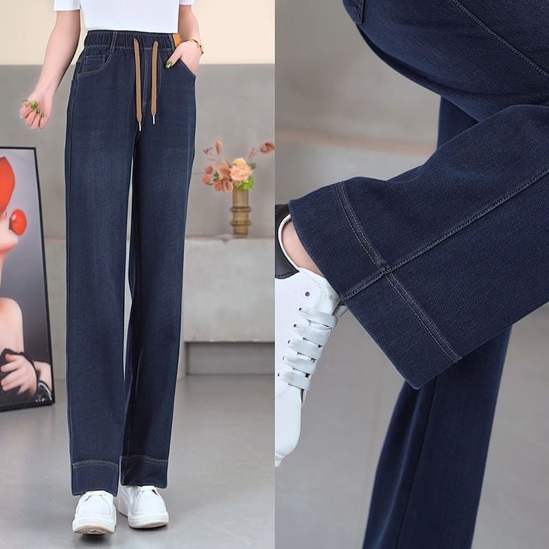 中老年妈妈秋装裤子高腰阔腿牛仔裤宽松显瘦直筒长裤松紧腰休闲裤