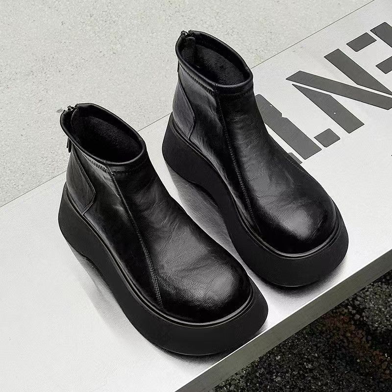 厚底增高百搭短靴女鞋2025新款冬季勃肯鞋切尔西靴加棉马丁靴棉鞋
