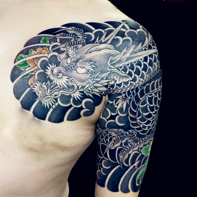 纹身贴胸前男半甲老传统刹车印樱花臂彩色社会精神小伙防水持久贴