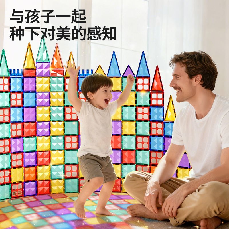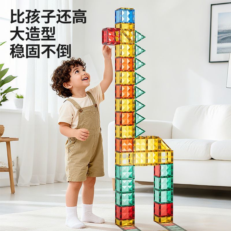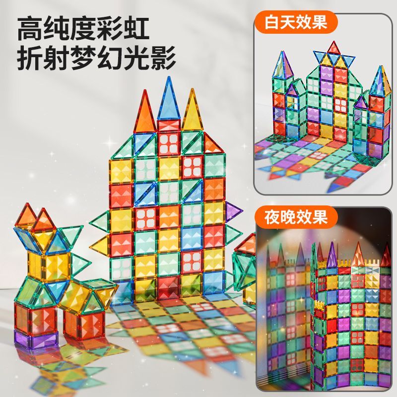 纽奇透光彩窗磁力片钻面积木方形拼装男女孩磁性强磁益智儿童玩具