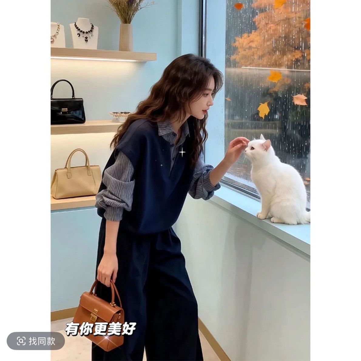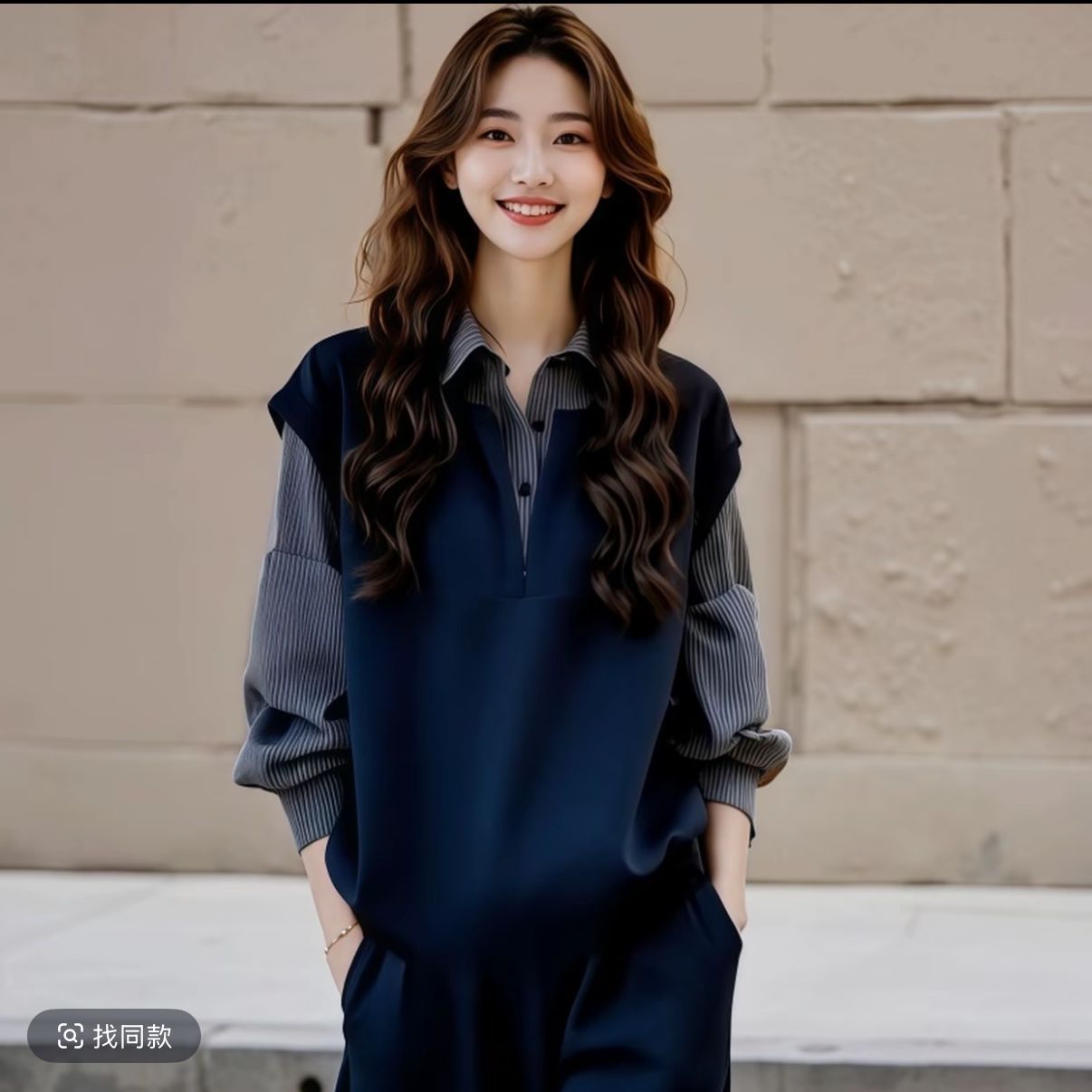 设计衬衫披肩衬衣时尚2025格子秋季新款百搭上衣两件套套装【7天内发货】