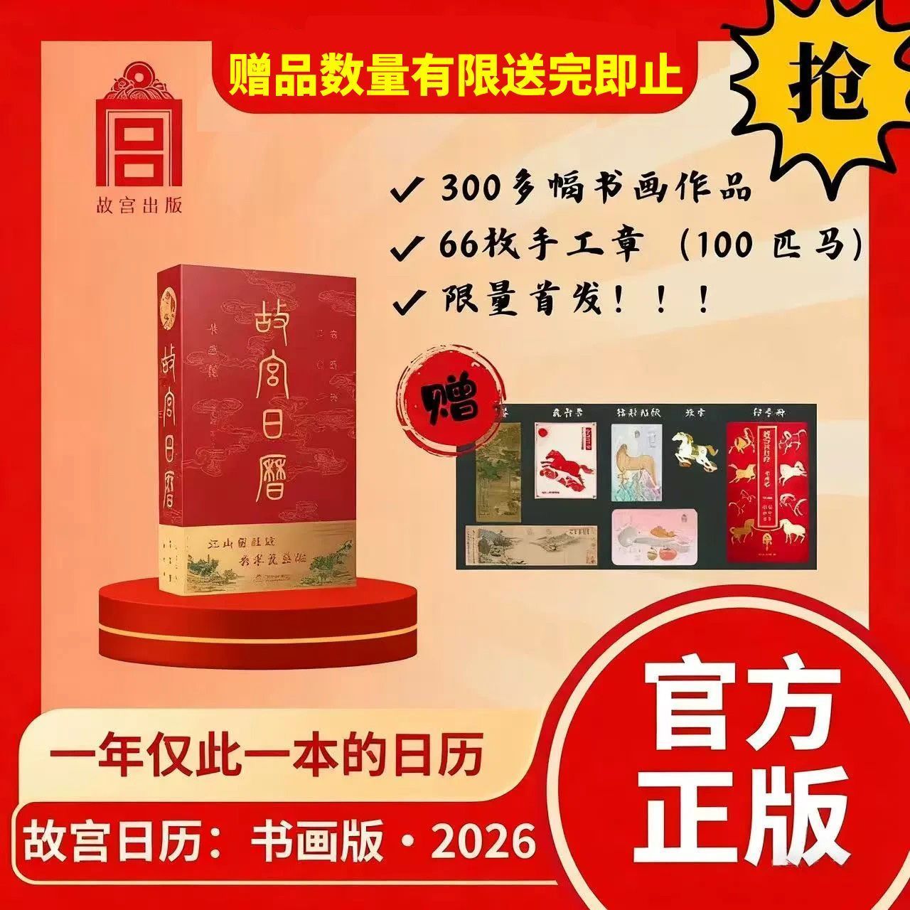 2026年故宫日历书画版100周年打卡博物馆正版农历丙午年台历书籍