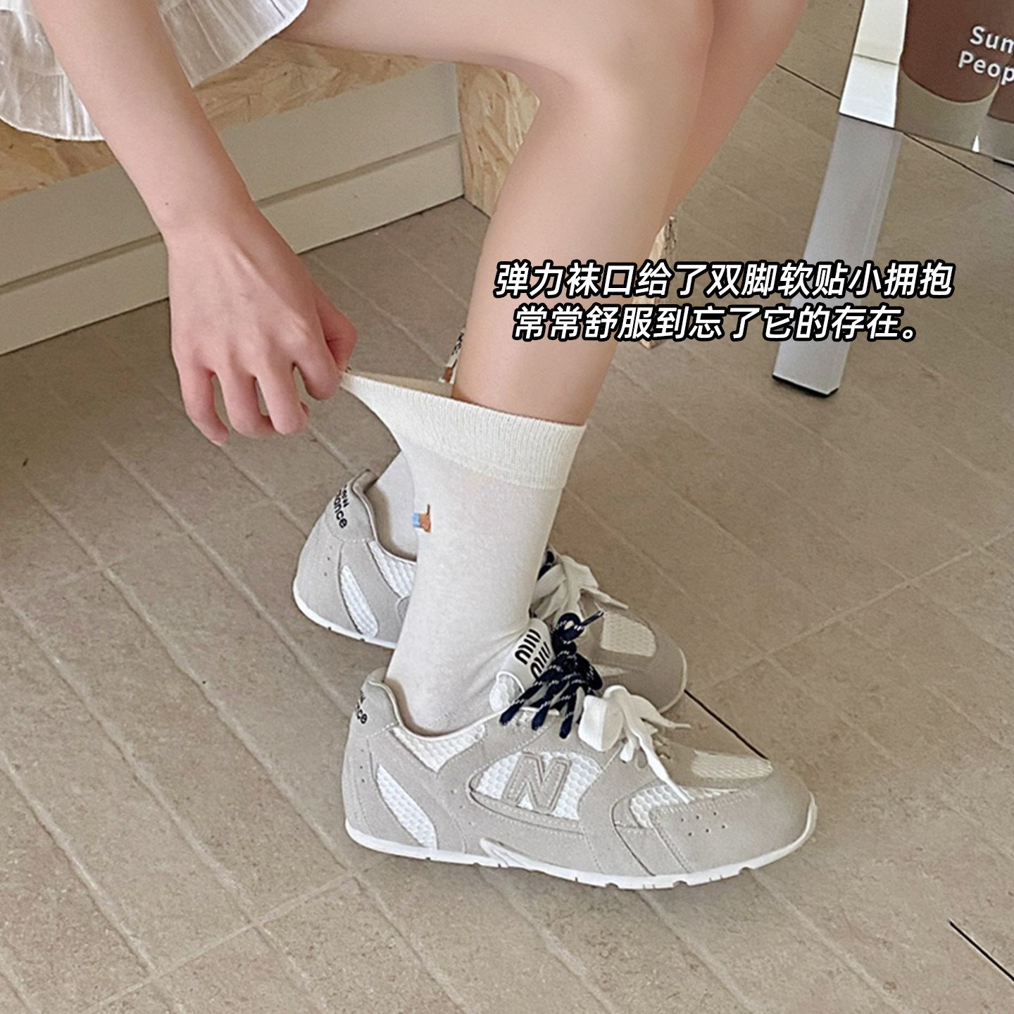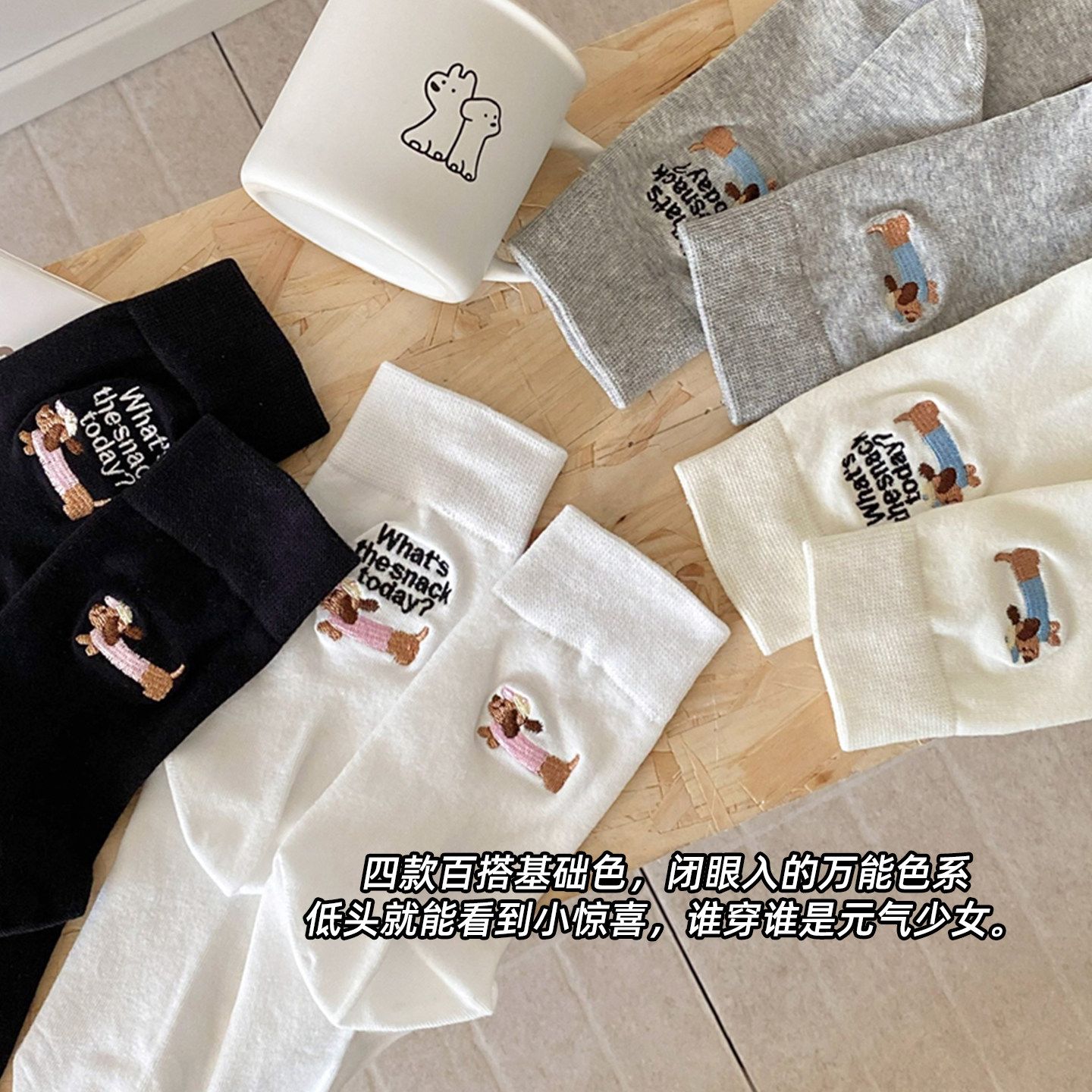 白色袜子女春秋款后跟AB款腊肠狗刺绣2026新款爆款无骨中筒袜