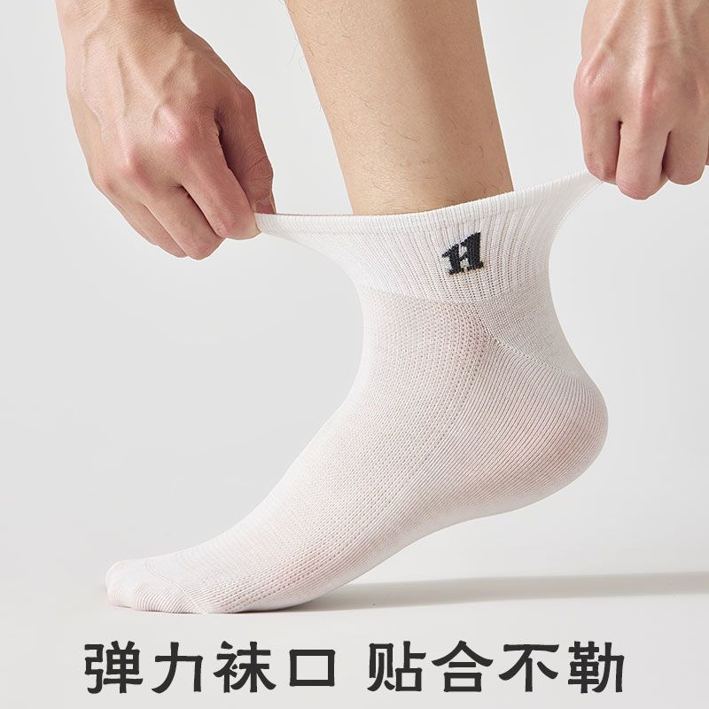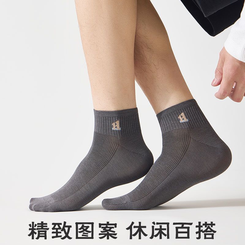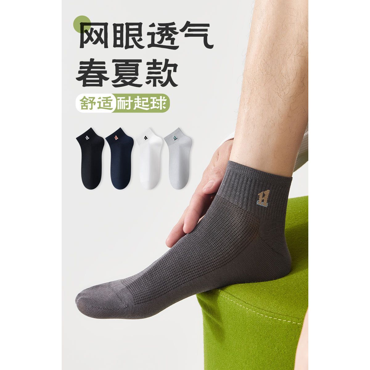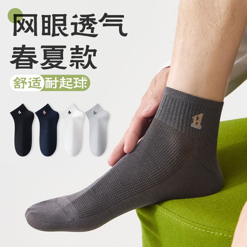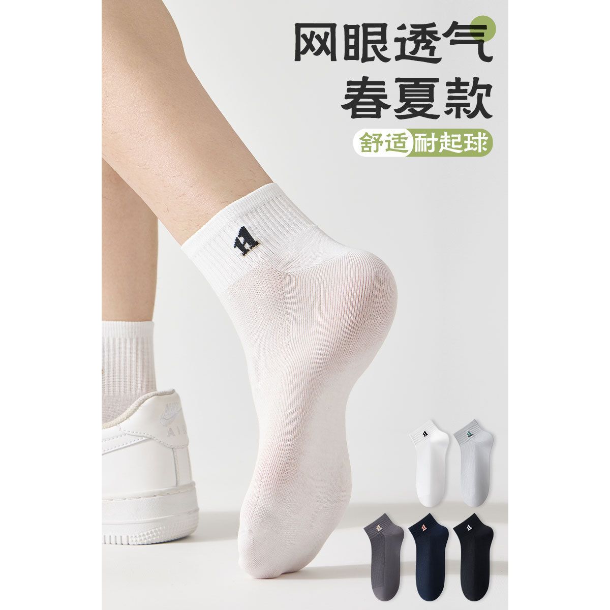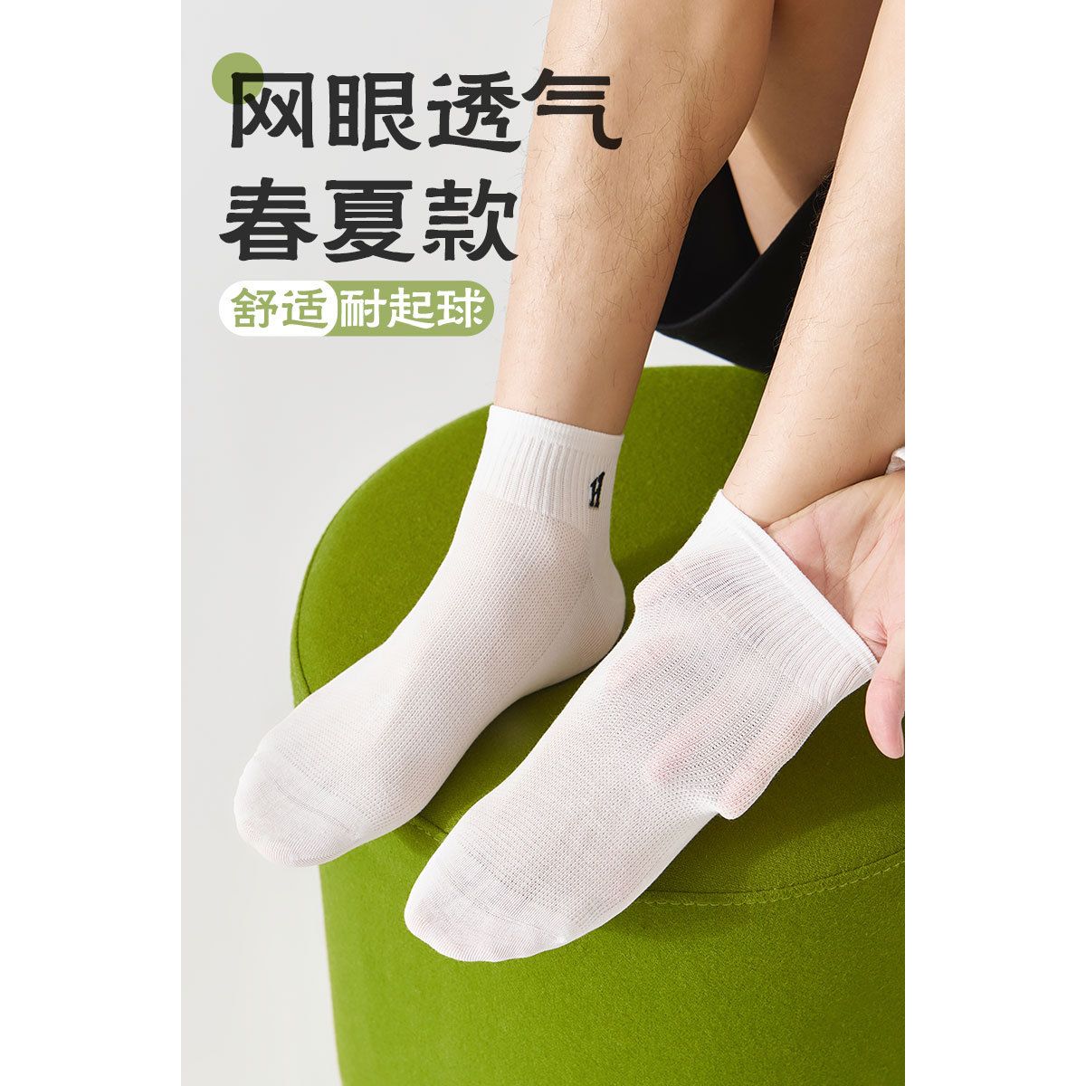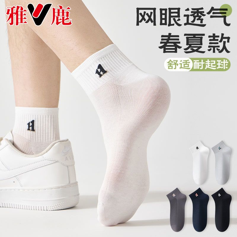 雅鹿男士网眼短筒袜春夏季薄款亲肤运动袜吸湿排汗防臭袜抗菌透气