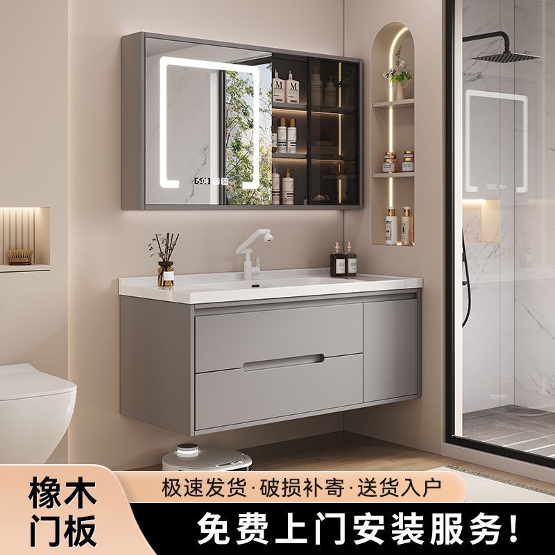 橡木烤漆智能浴室柜组合陶瓷一体盆卫浴柜洗脸手盆柜卫生间洗漱台