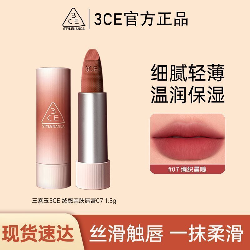 【双支装】3CE绒感亲肤唇膏拥抱口红小样编织晨曦哑光持久显白女