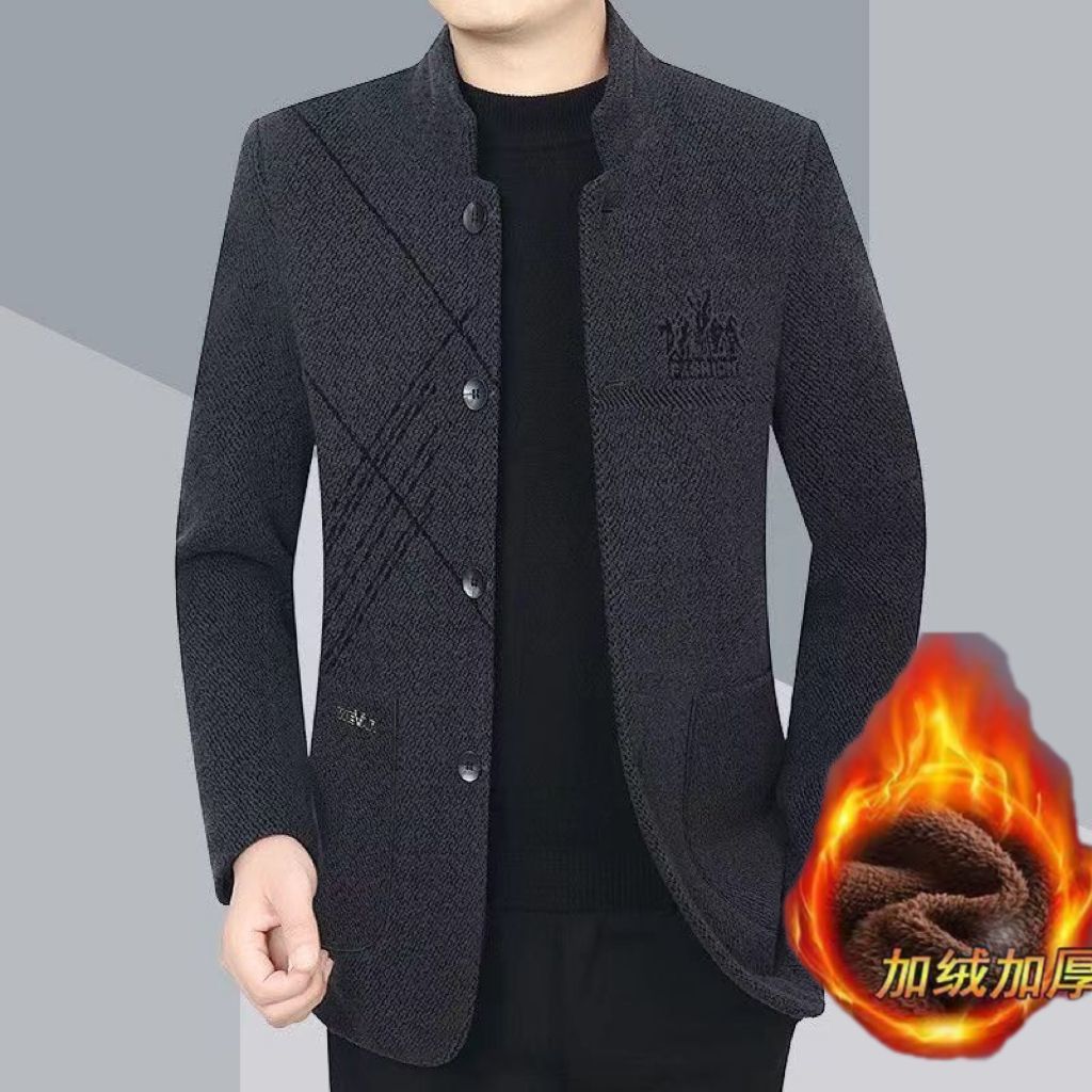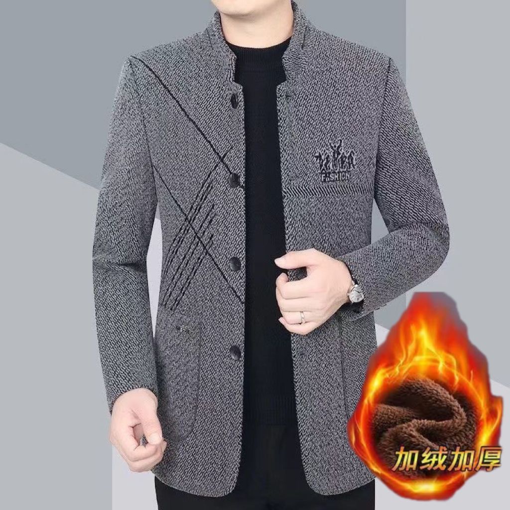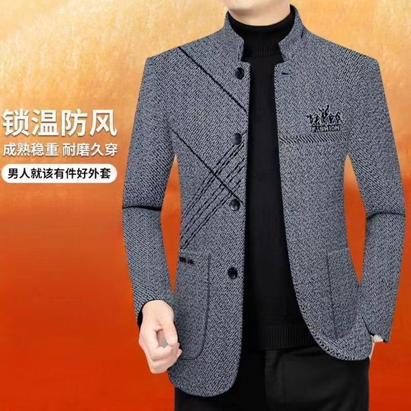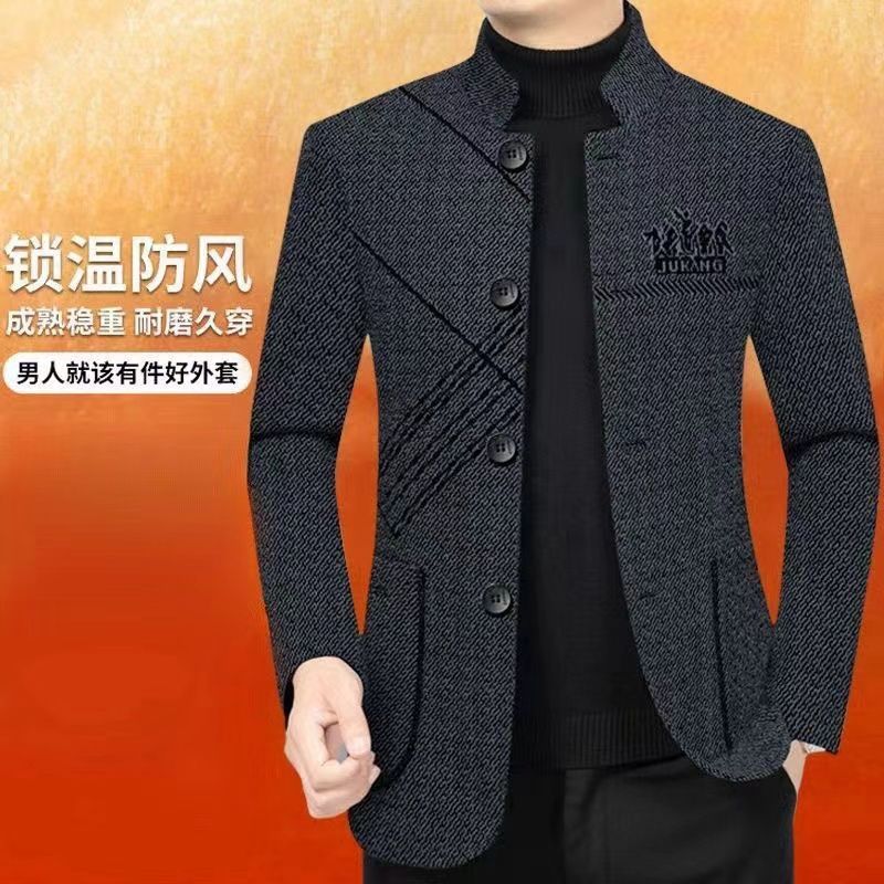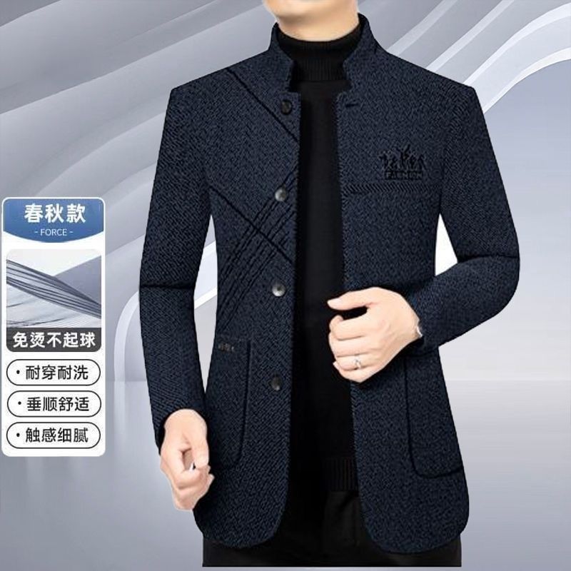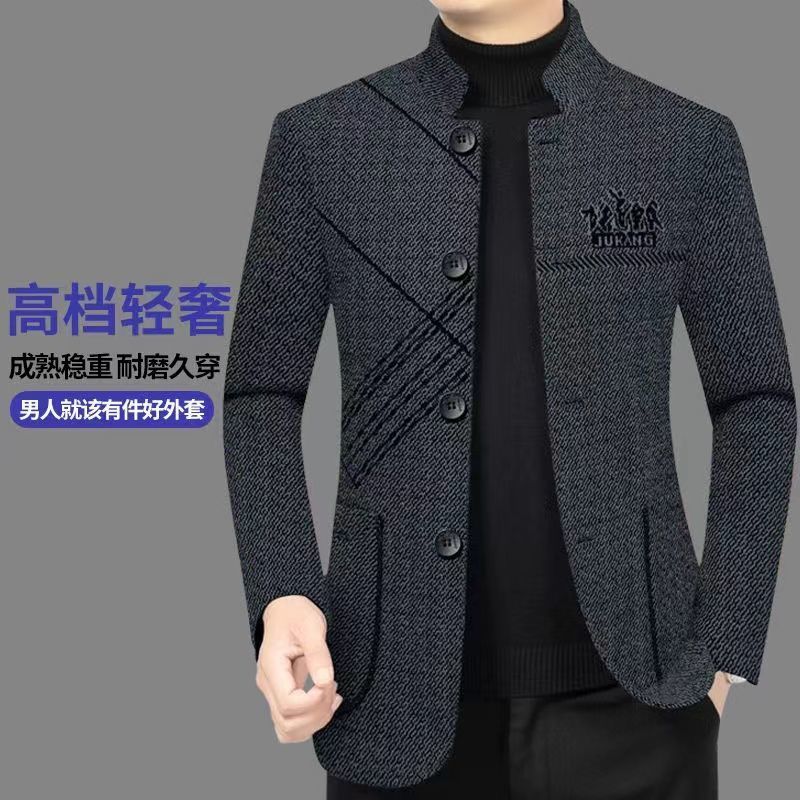 2026年新款男士毛呢大衣外套高档休闲立领上衣时尚大气老年爸爸装