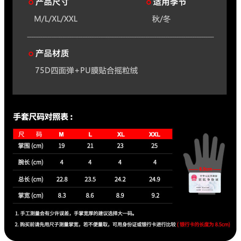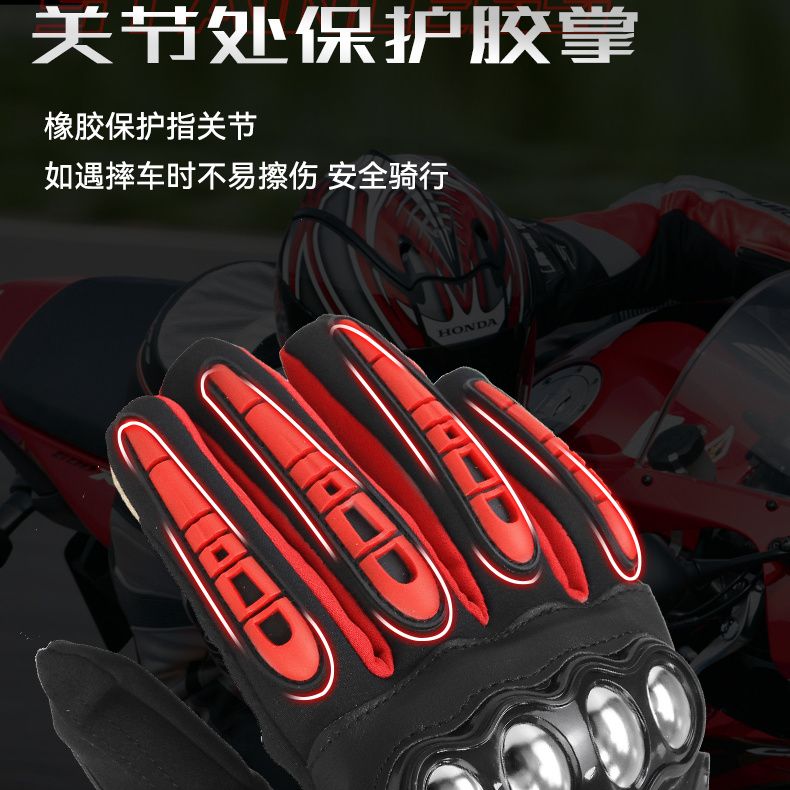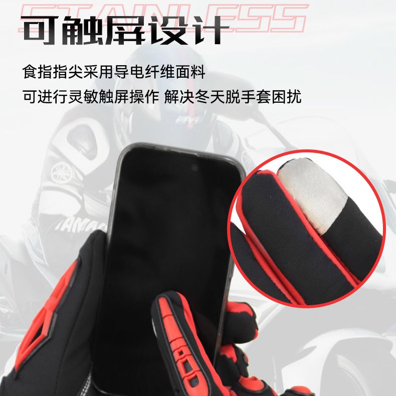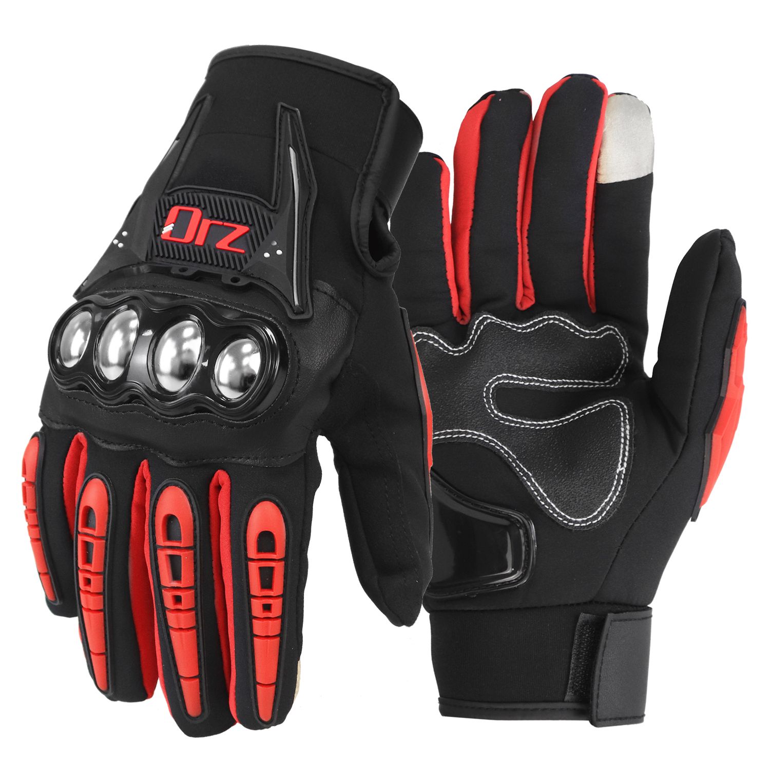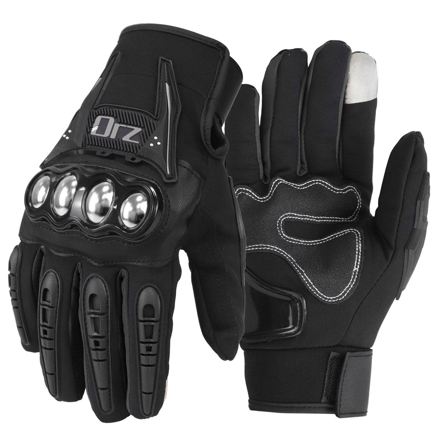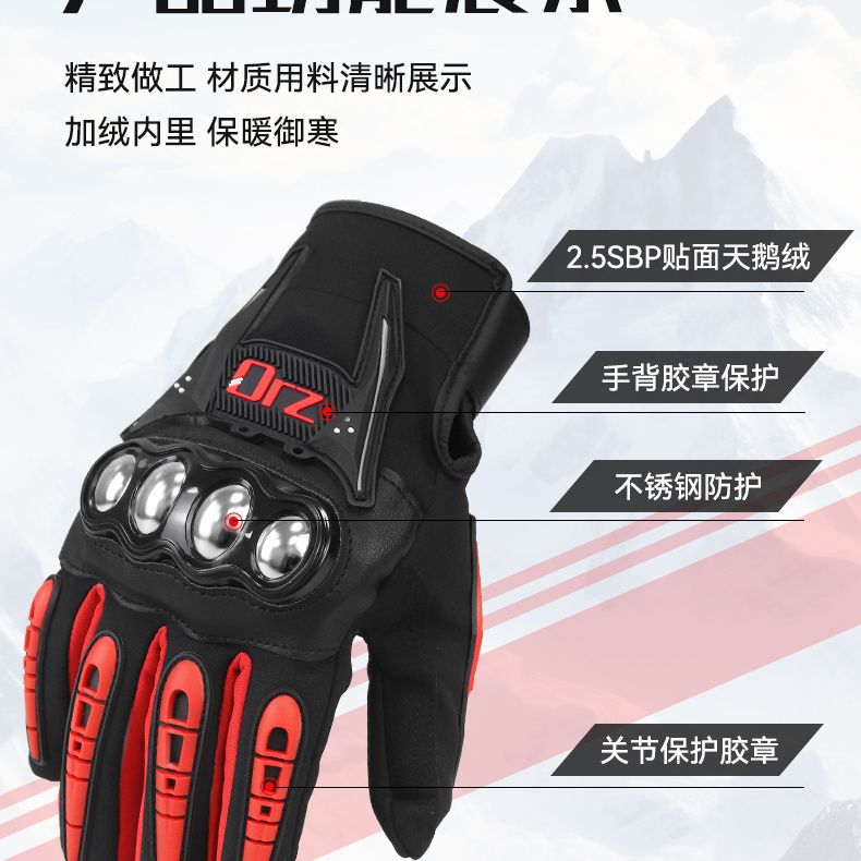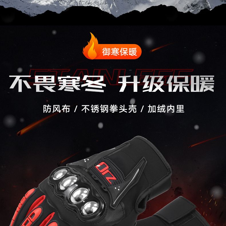 Orz摩托车冬天骑行手套男女防寒加绒不锈钢短款防摔触屏机车防冻