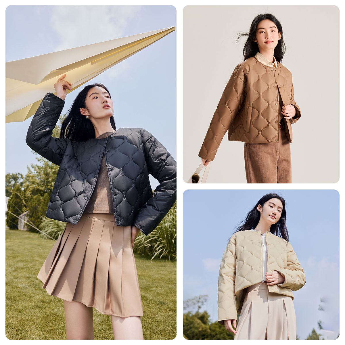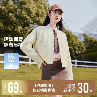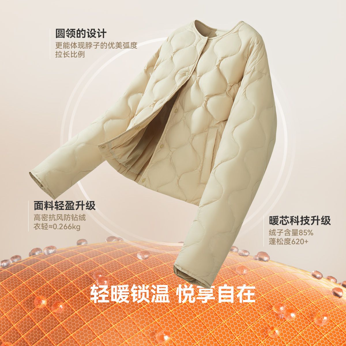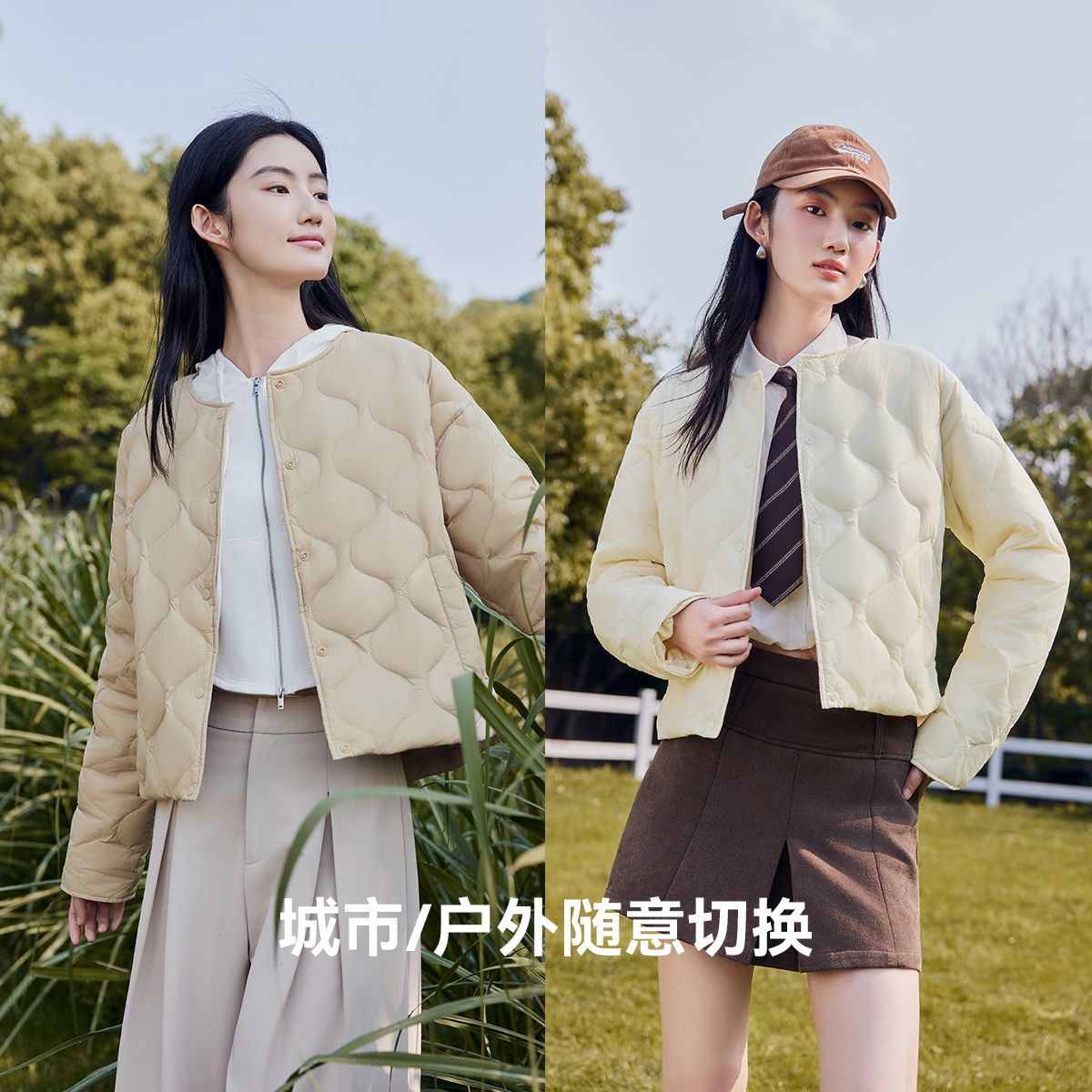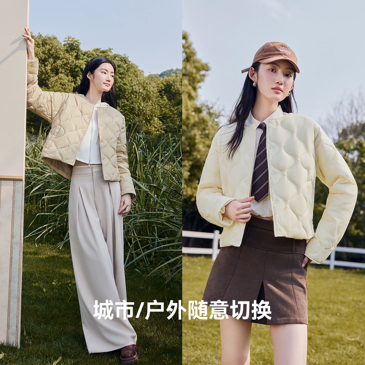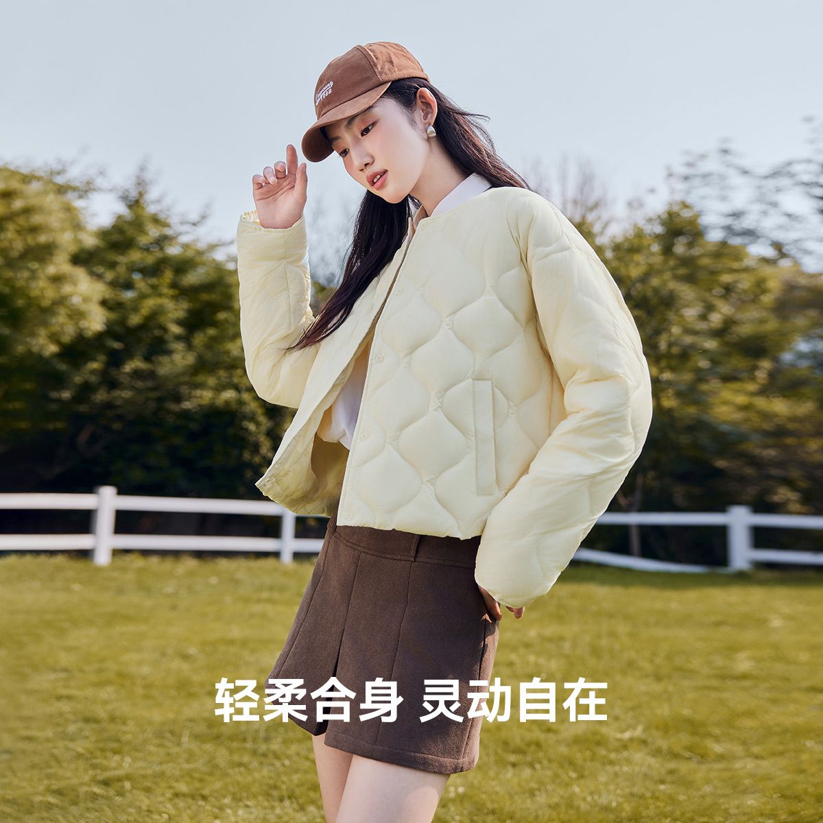 雪中飞保暖菱格秋羽绒初秋轻薄内穿时尚百搭短款羽绒服轻便圆领