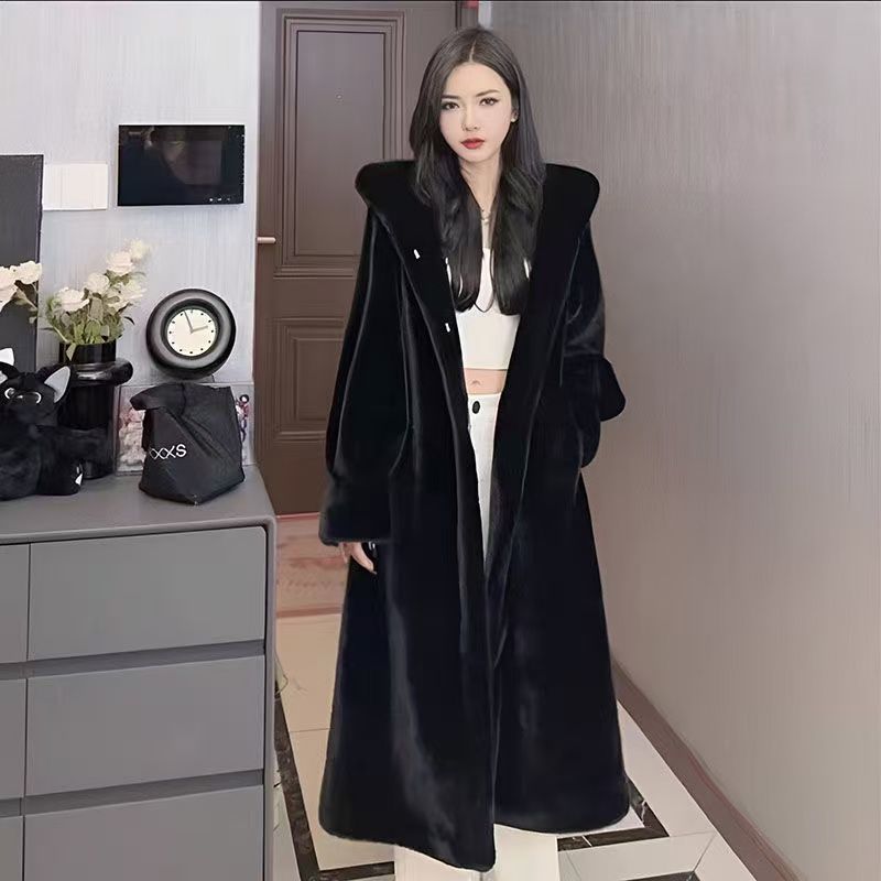 2025冬皮草外套特价清仓女士皮草貂皮大衣长款加长版皮草外套连帽