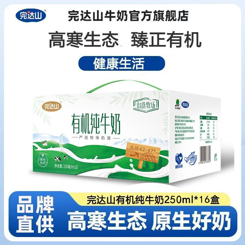 【12月产】完达山有机纯牛奶250ml*16盒整箱批发孕妇奶学生奶