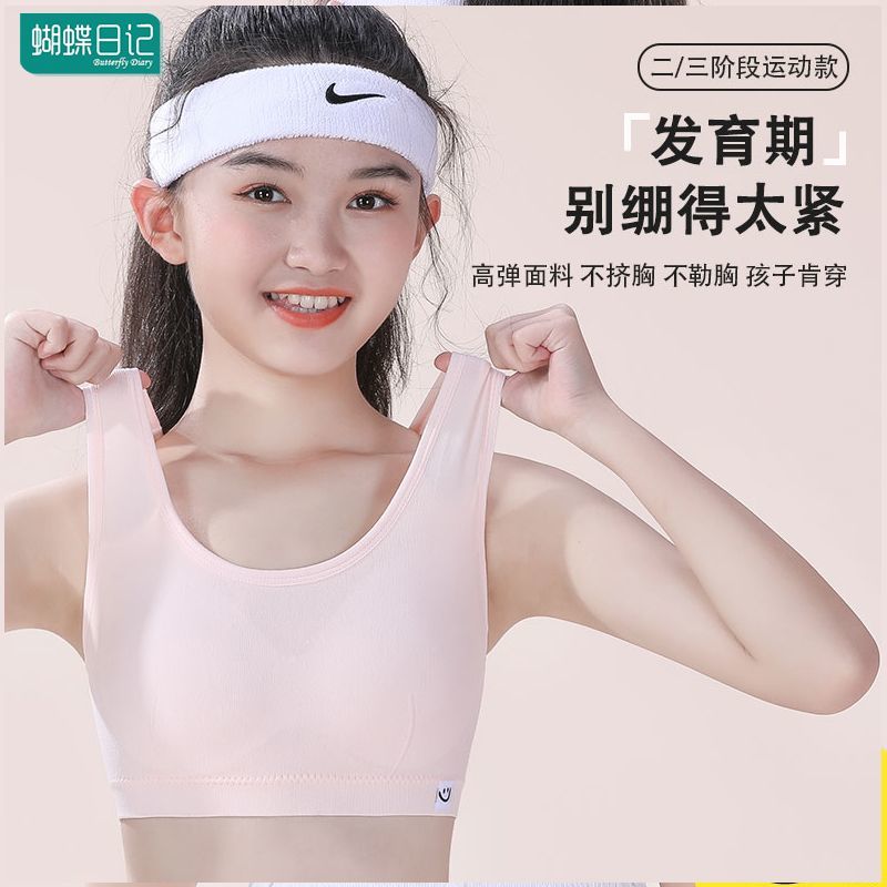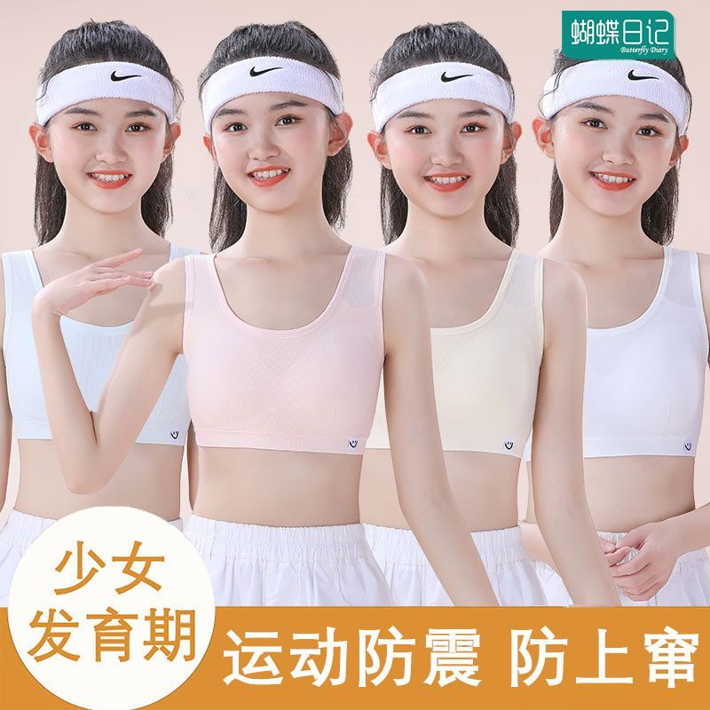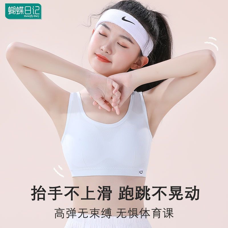 蝴蝶日记发育期内衣女运动透气少女文胸固定杯学生防震显小背心薄