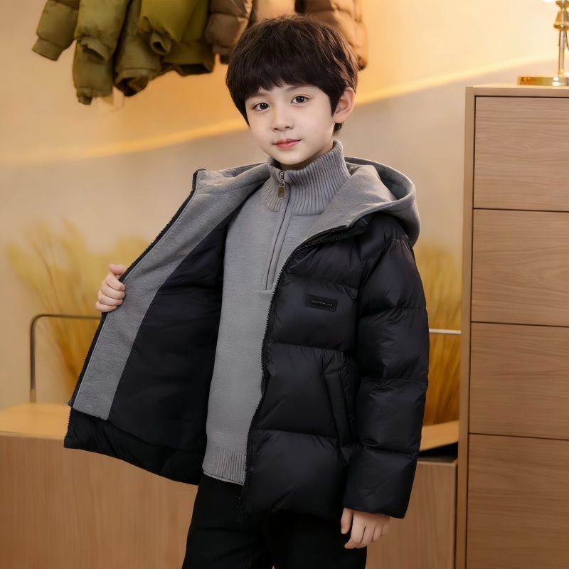 男童棉服冬季加厚假两件羽绒棉服新款中大童爆款保暖连帽棉袄外套