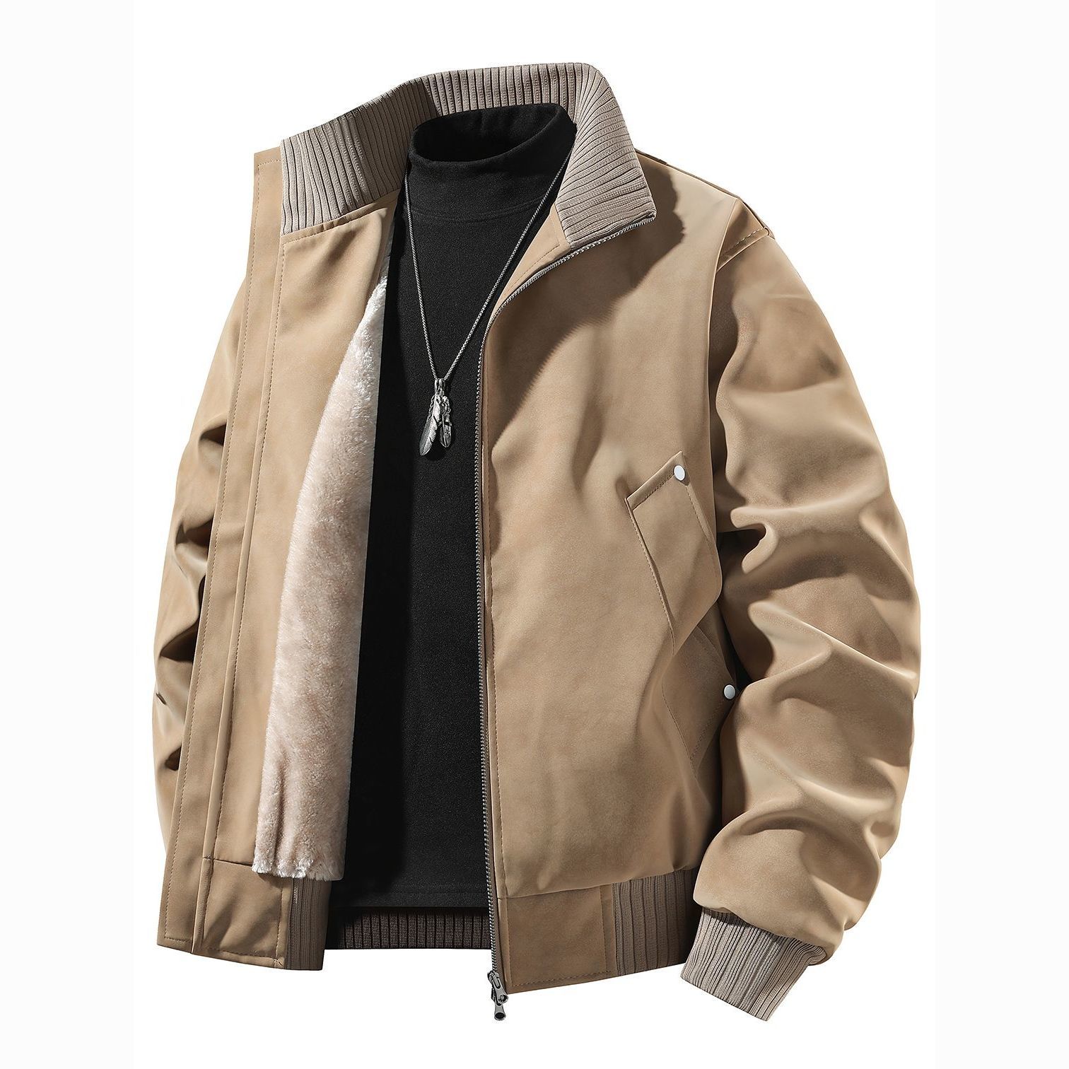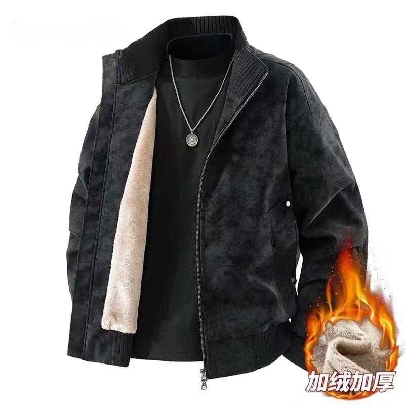 新冬季皮毛一体加绒加厚PU皮机车夹克重工源头外贸大码复古皮棉服