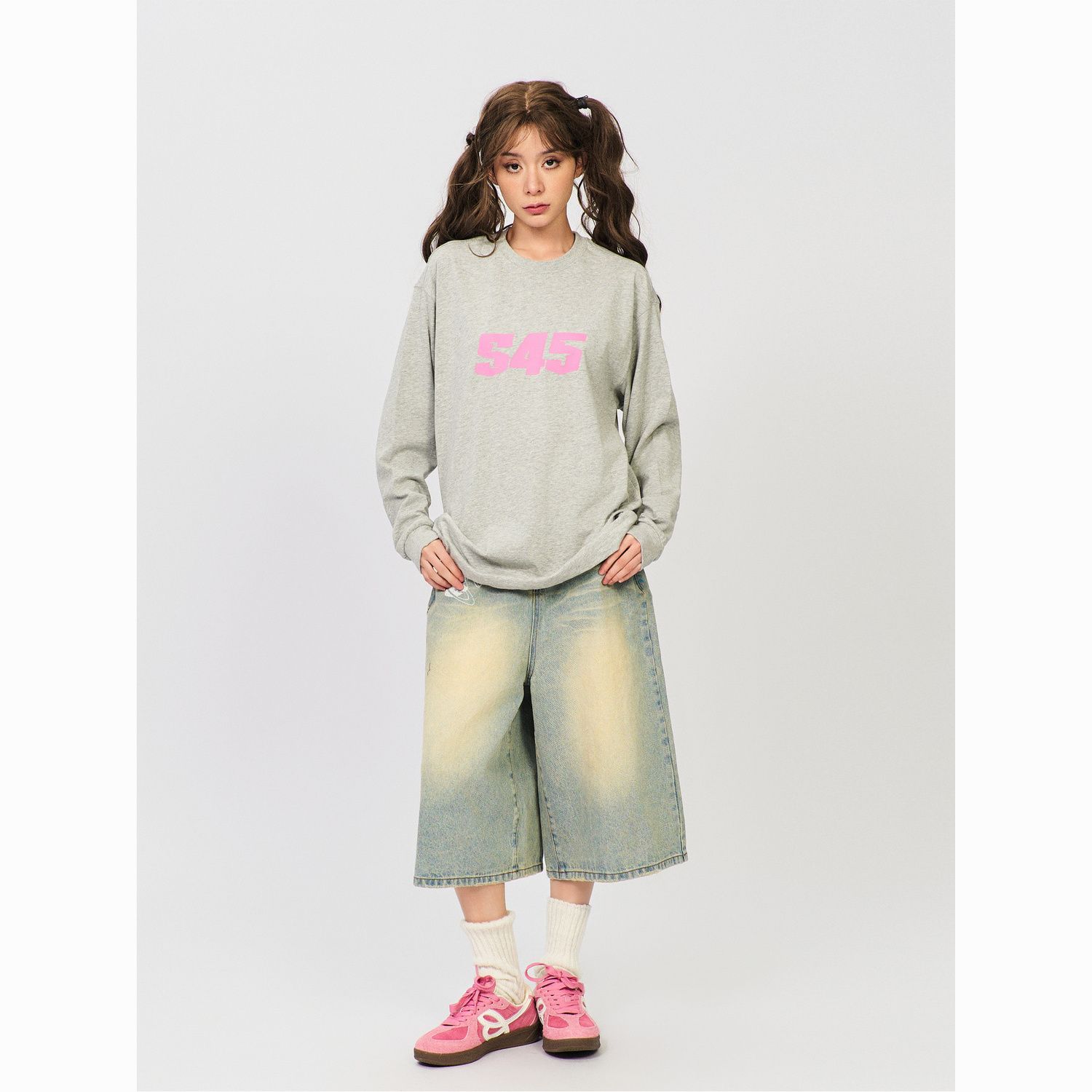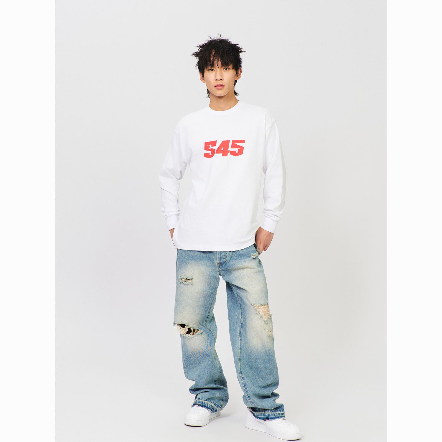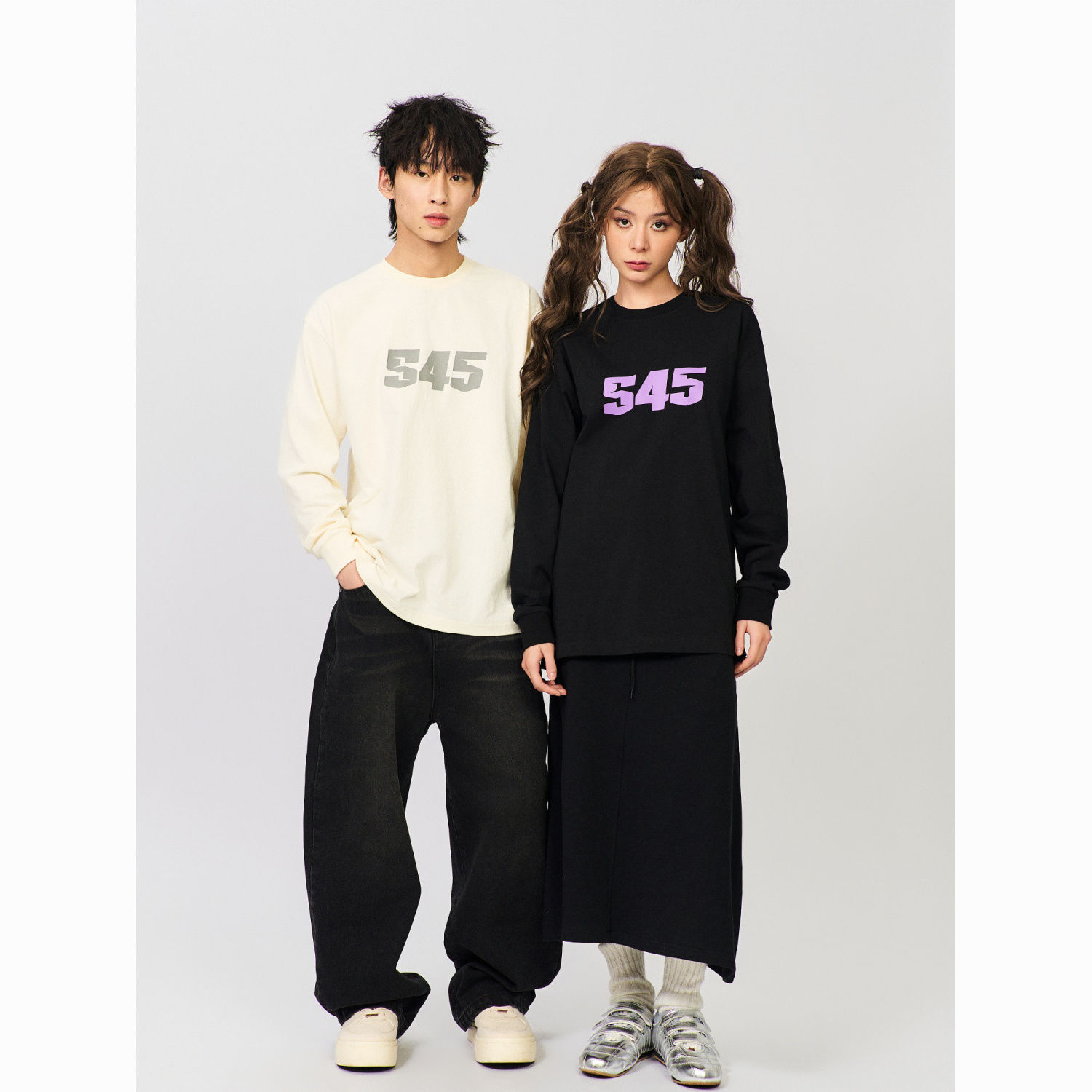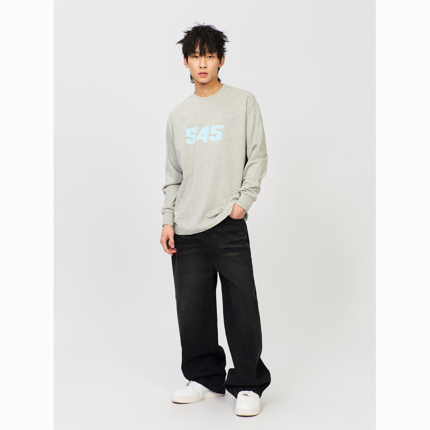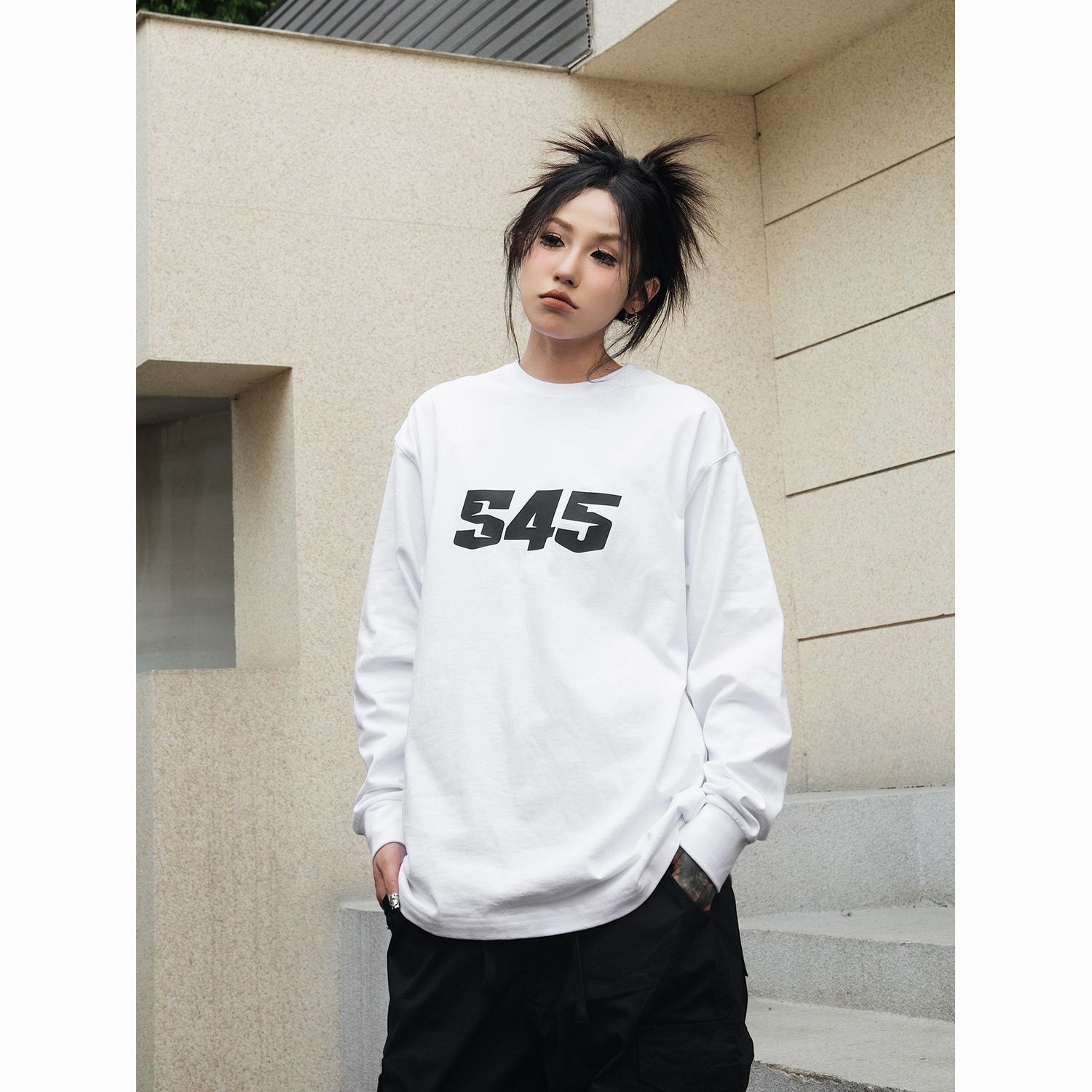 S45新款纯色基础纯棉圆领长袖男春秋季百搭休闲打底情侣宽松t恤