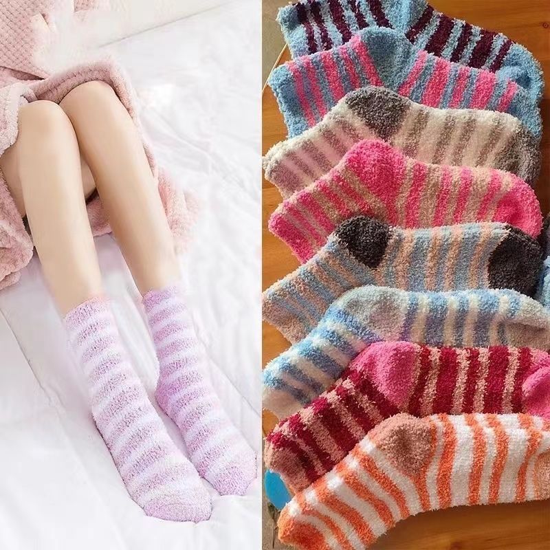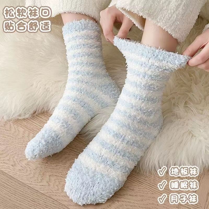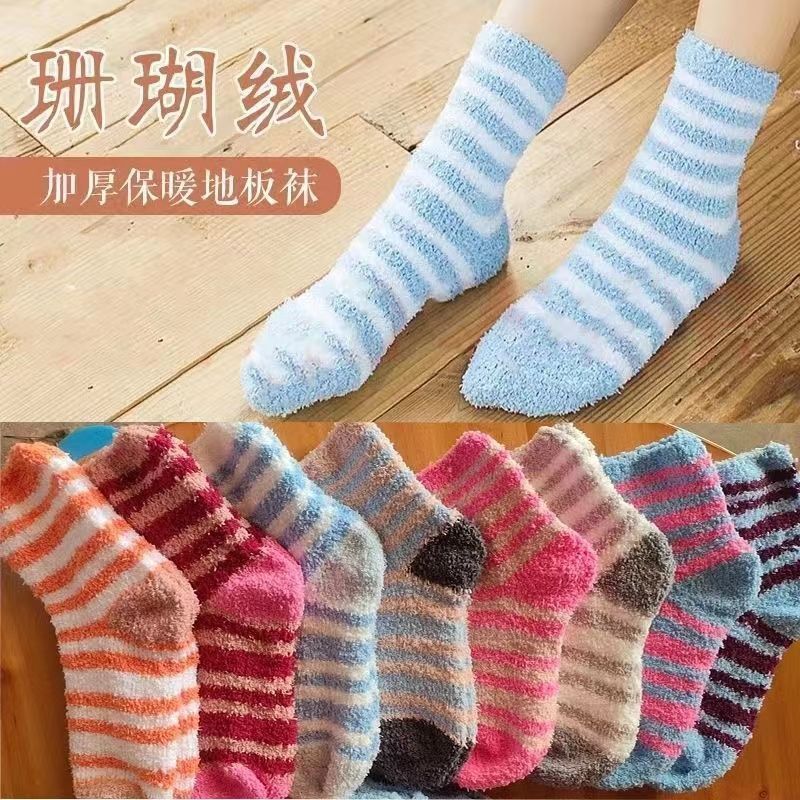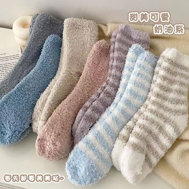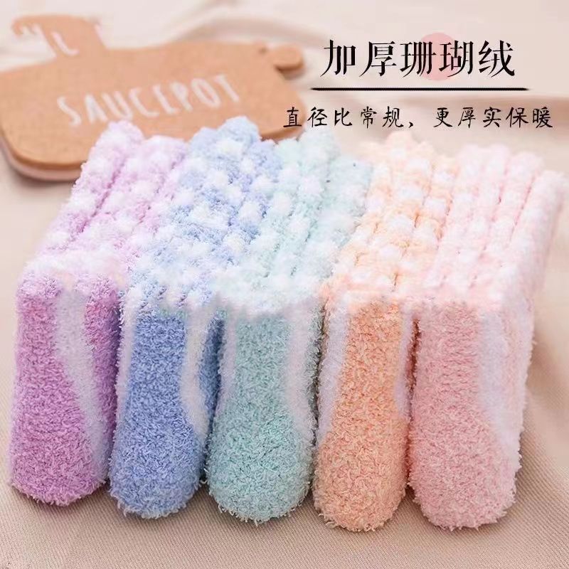 珊瑚绒加厚米国出口货冬季保暖长款珊瑚袜睡眠袜厚款超长宽松高腰
