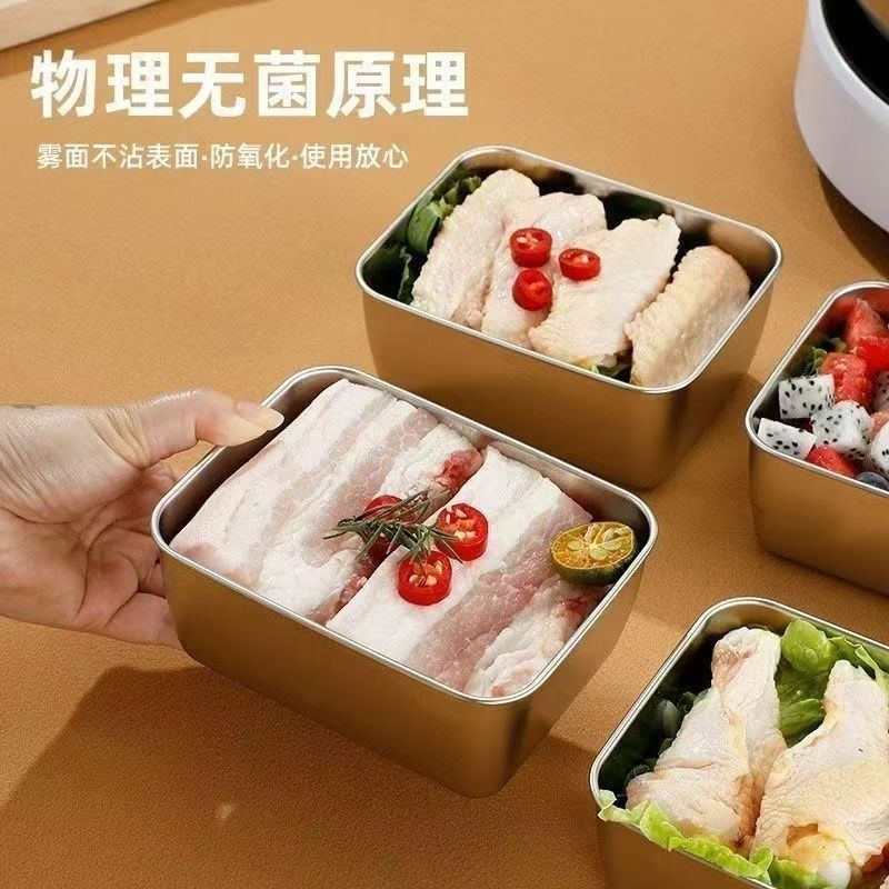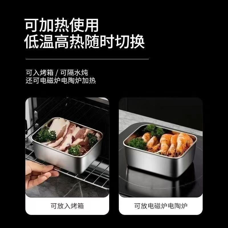 不锈钢饭盒食品级带盖保鲜盒上班族便当盒密封长方形新品