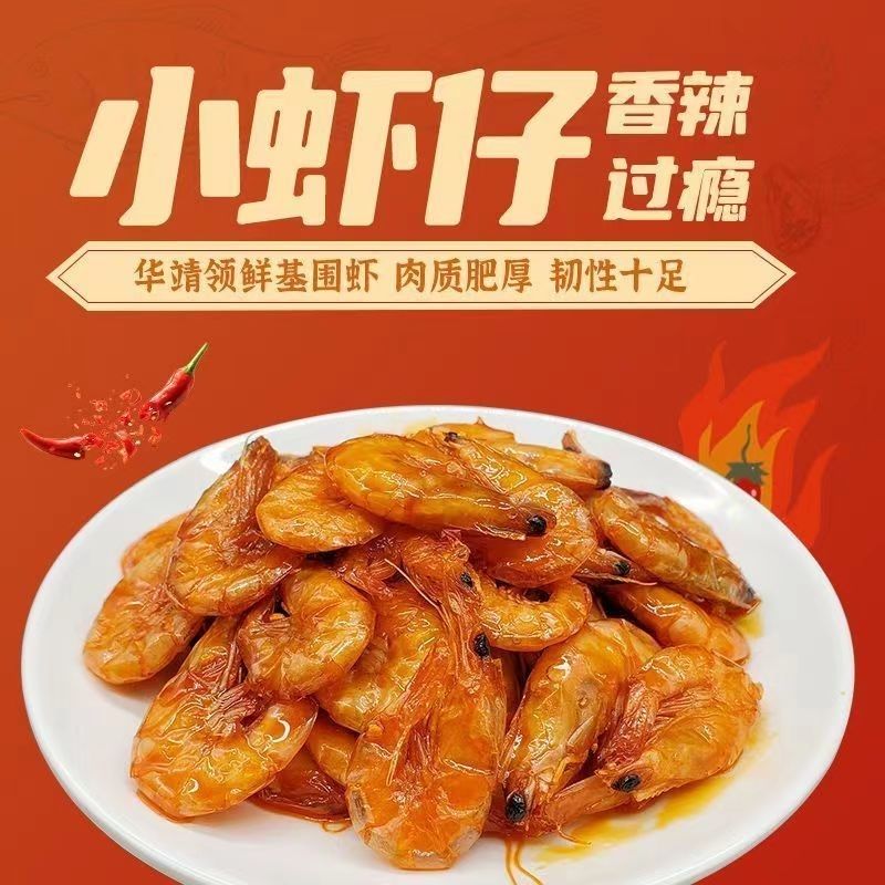 网红华靖麻辣香辣基围虾开袋即食盐焗虾油炸虾仁独立小包装