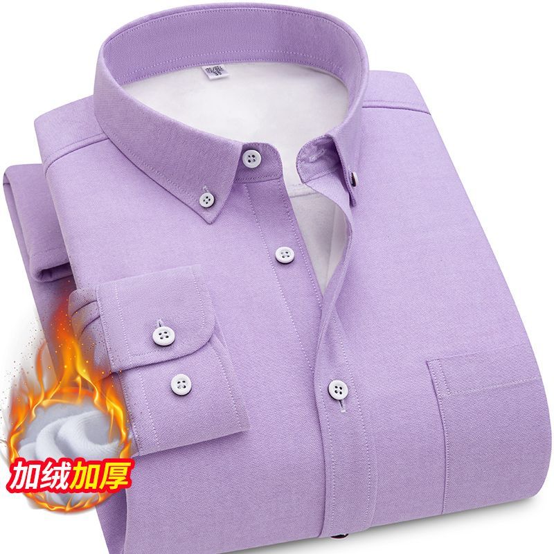 秋冬季加绒冬季衬衫加厚中老年男士休闲商务棉一体绒保暖长袖衬衣