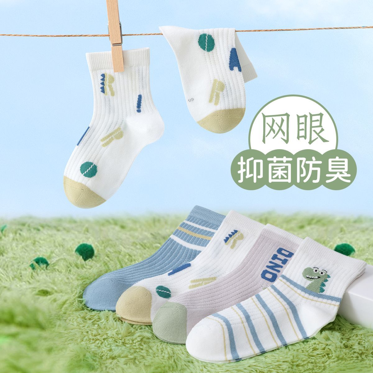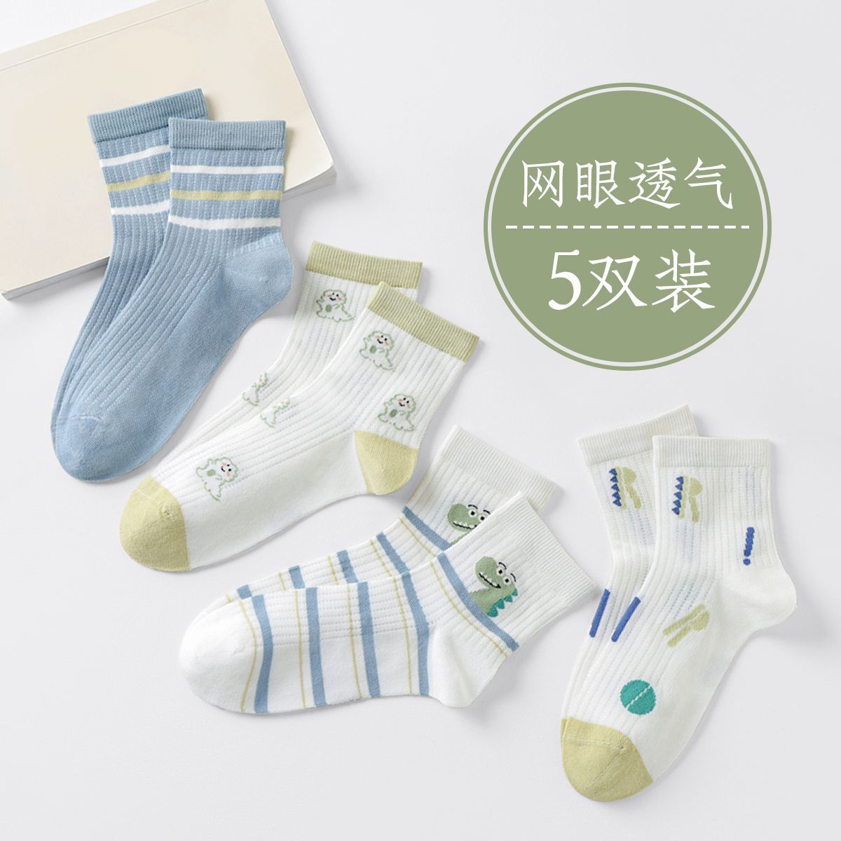 儿童袜子男童春夏薄款纯棉青少年防臭吸汗夏网眼透气学生男孩短袜