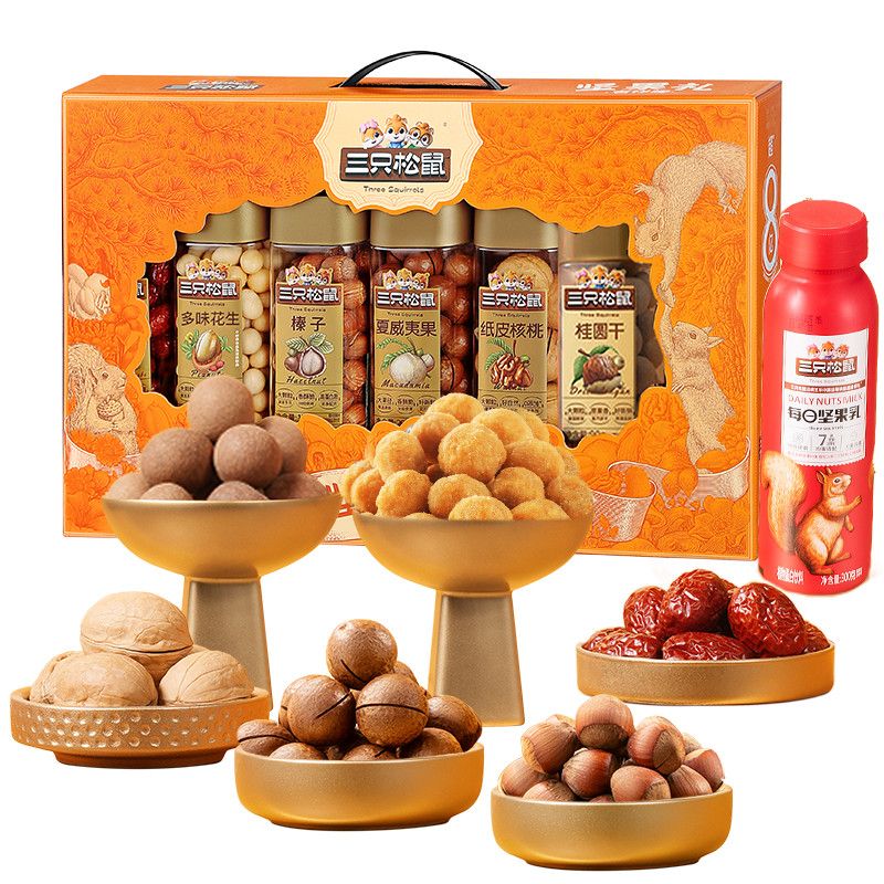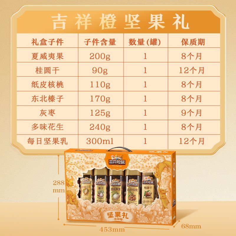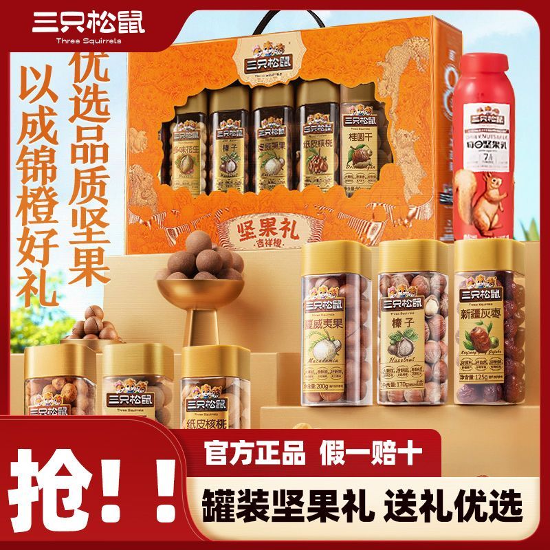 【年货送礼】三只松鼠罐装坚果礼盒吉祥橙1235g7罐团购送长辈爆款