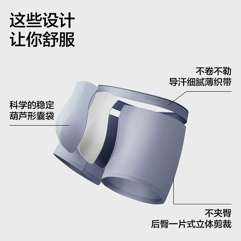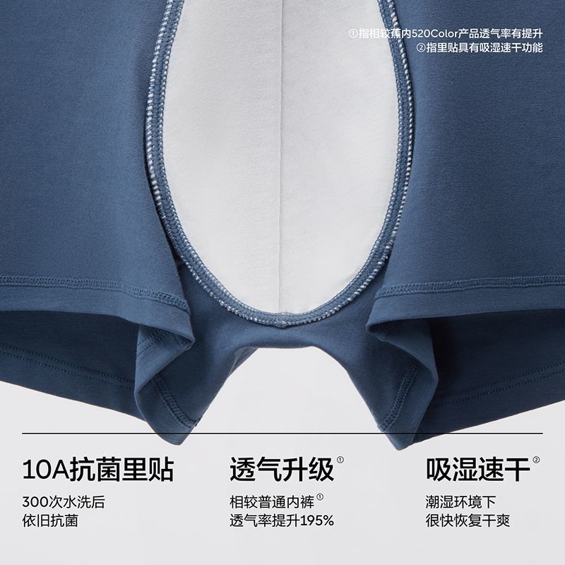 蕉内银皮300S男士10A抗菌棉感平角内裤吸湿速干透气纯棉裆四角裤