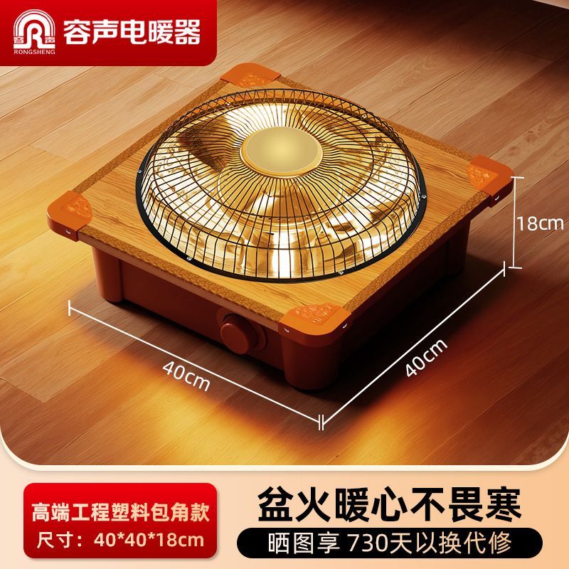 容声火盆取暖器家用实木小太阳正方形火炉办公室学生宿舍节能静音