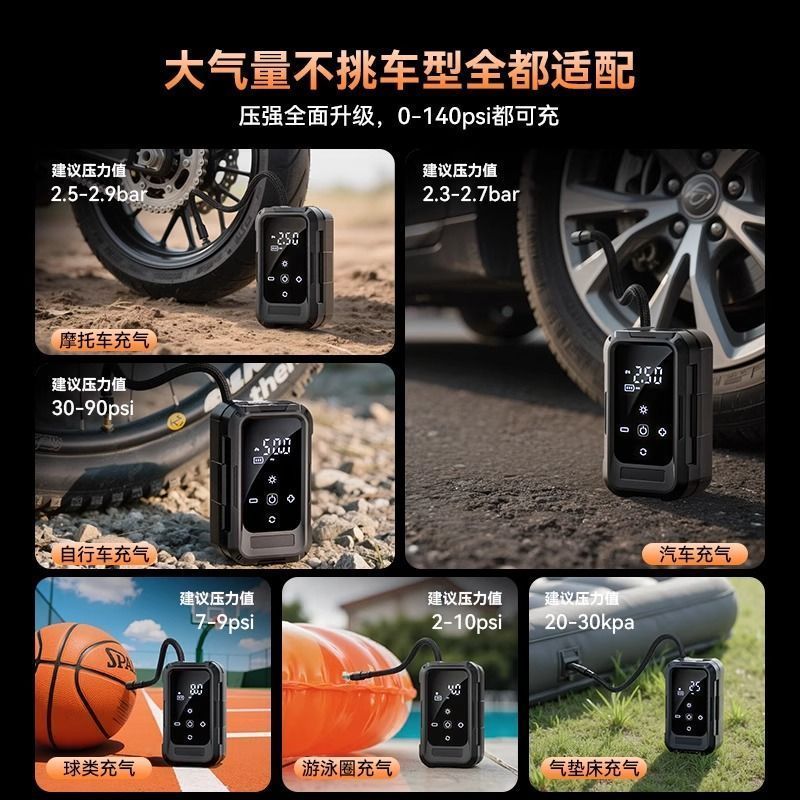 随途车载充气泵无线打气筒电动自行汽车用带测轮胎压便携式充气宝